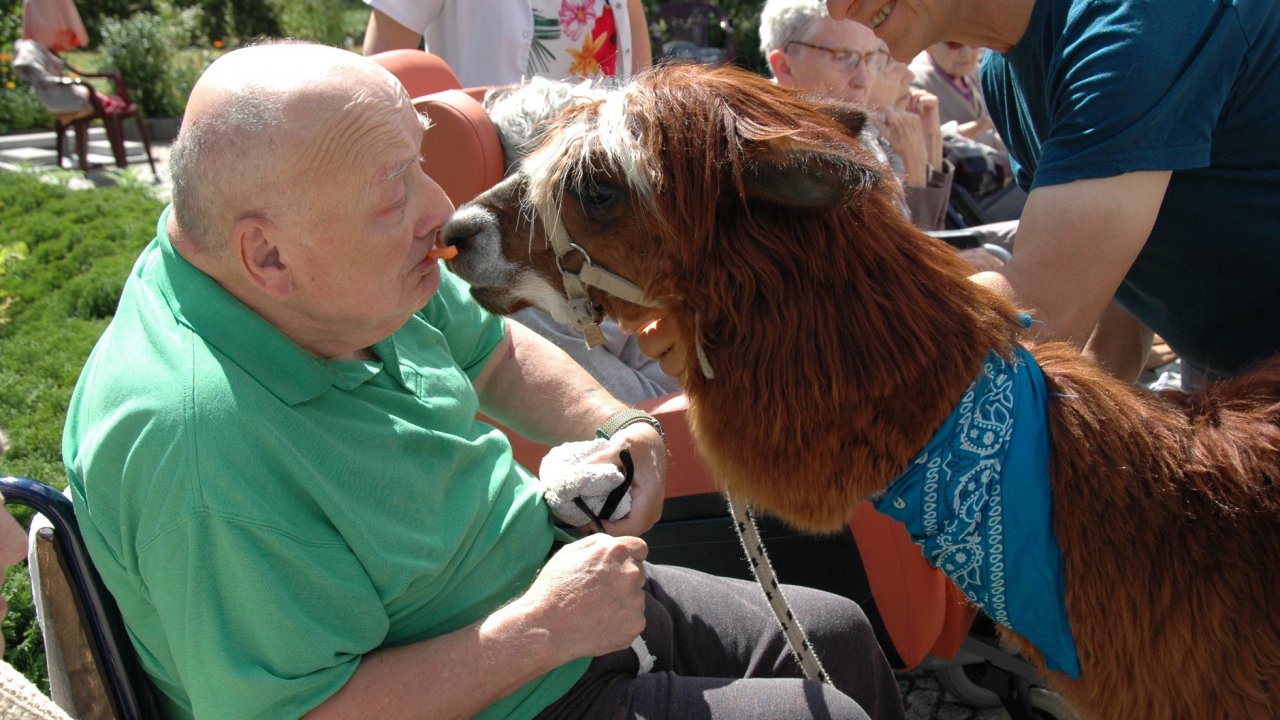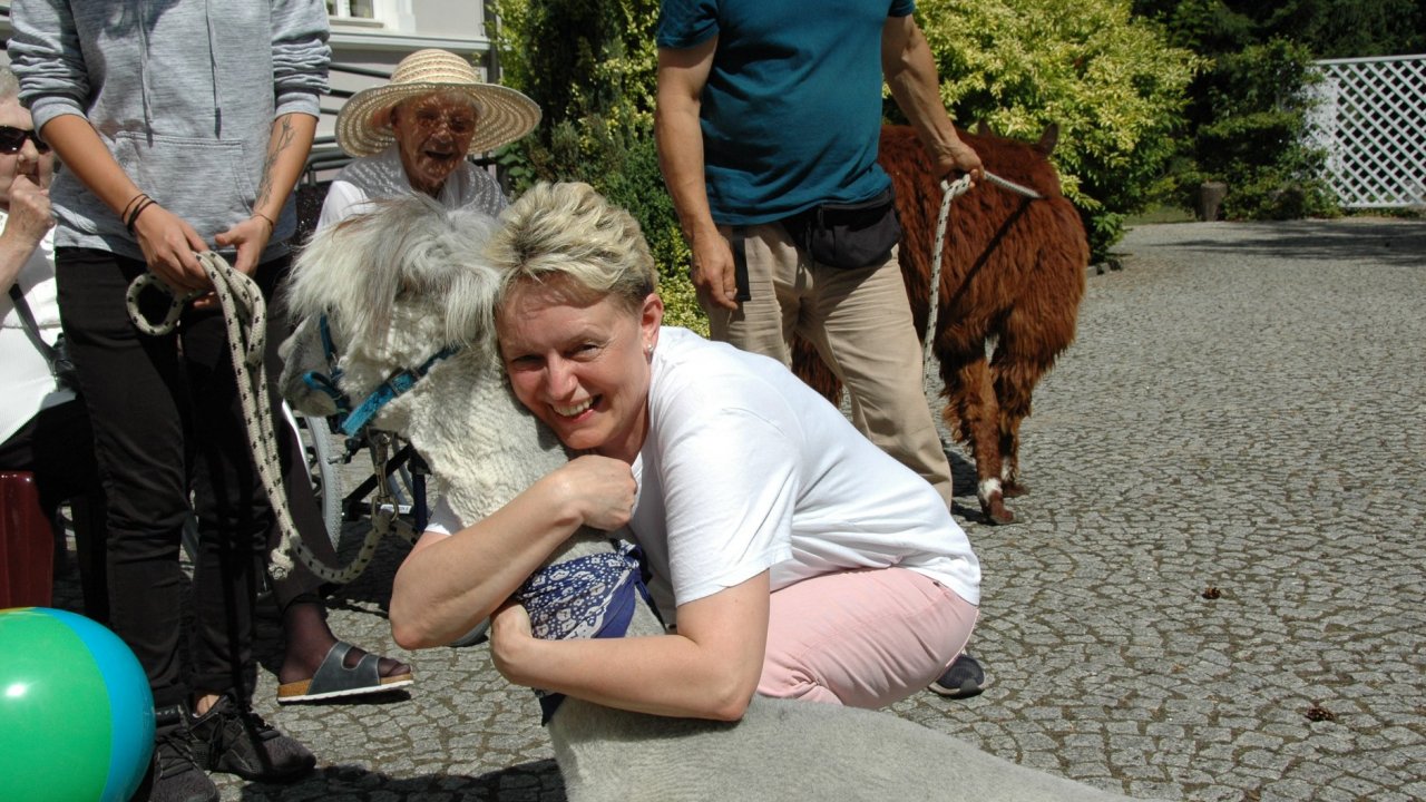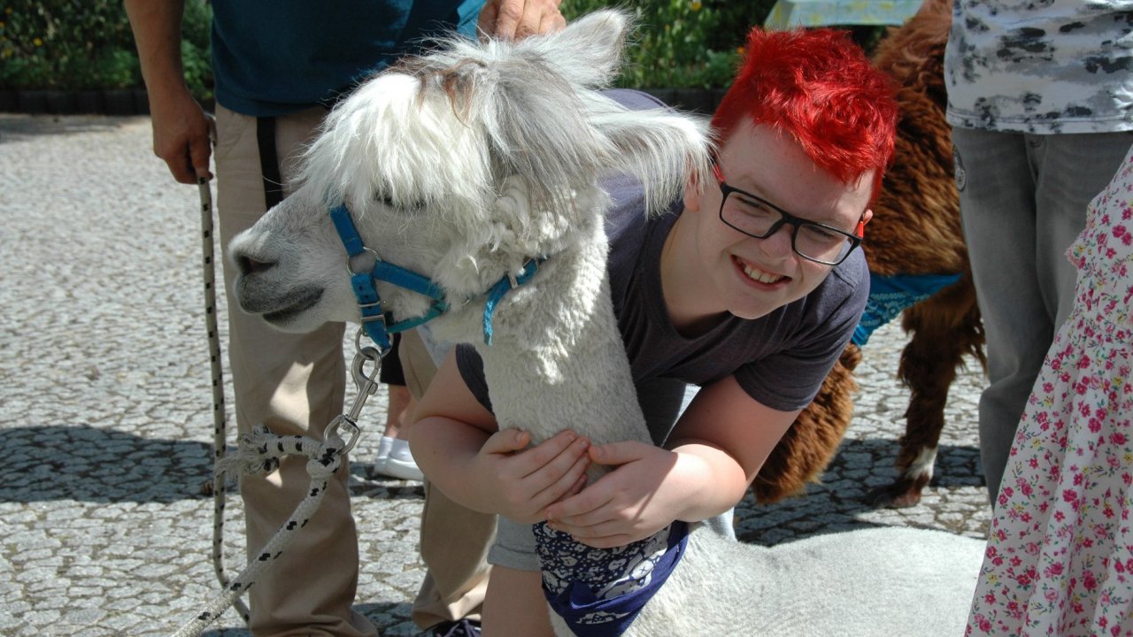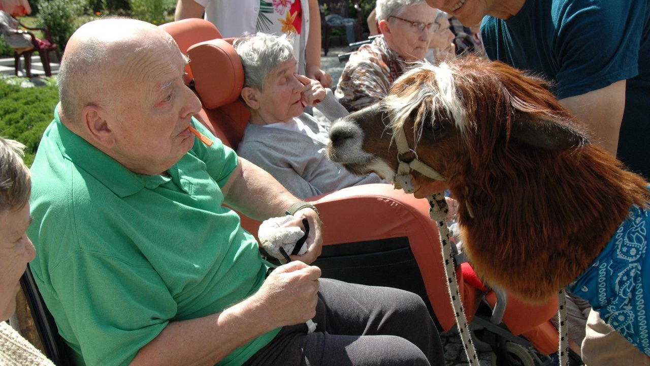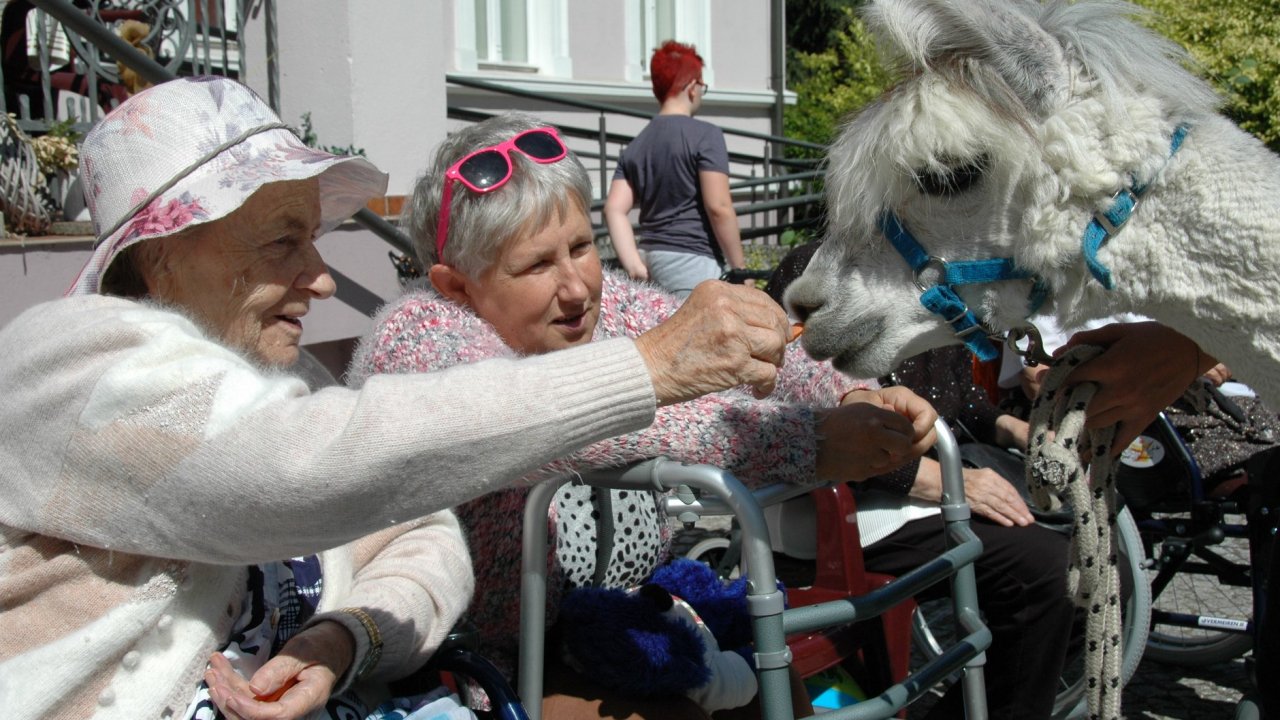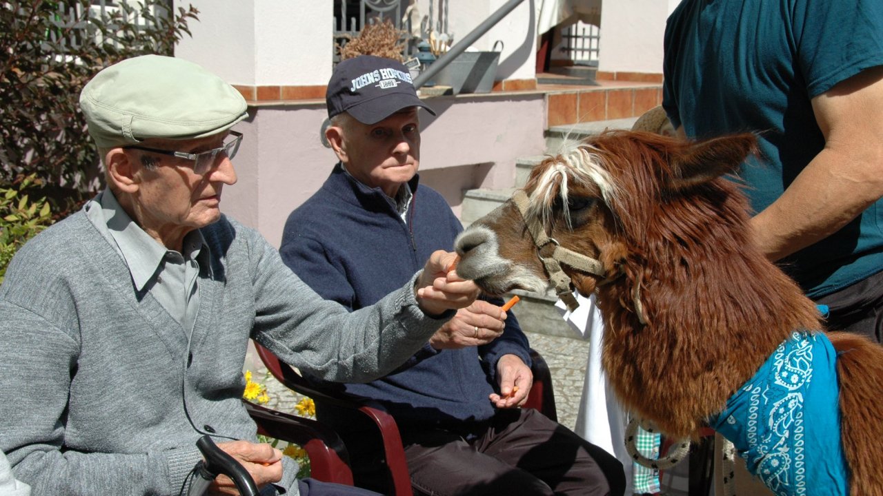 Mieliśmy dzisiaj dużo miłych wrażeń - przyjechały do nas Alpaki z ośrodka "Małe Peru" w Piotrowicach. Przecudne terapeutyczne stworzenia wyglądające jak duże maskotki. Można by o nich powiedzieć: "dłuuugie szyje do przytulania". Na początku wzbudzały trochę respektu - ale szybko podbiły serca dosłownie wszystkich. Wprawdzie nie wszyscy chcieli je nakarmić i sami zjedli marchewkę do karmienia - to się może zdarzyć tylko u nas! Największe zaskoczenie przeżyły chyba jednak osoby leżące, gdy przy swoim łóżku ujrzały takie "uśmiechnięte stwory". W każdym razie na koniec "popatrzyliśmy sobie z Alpakami w oczy" i umówiliśmy się na następne spotkanie w przyszłym roku.