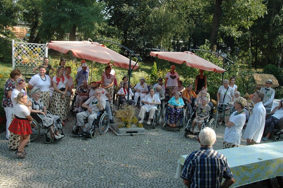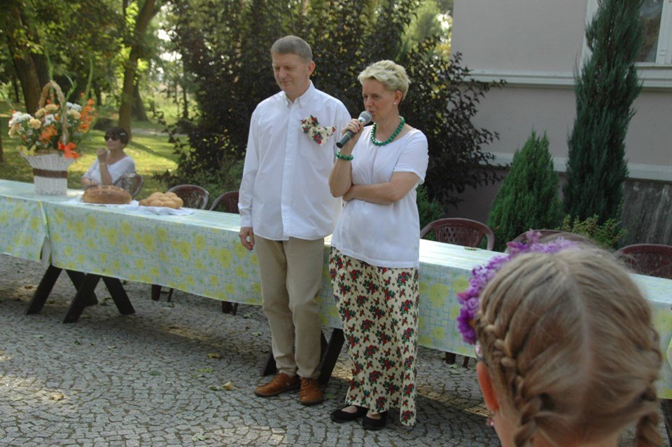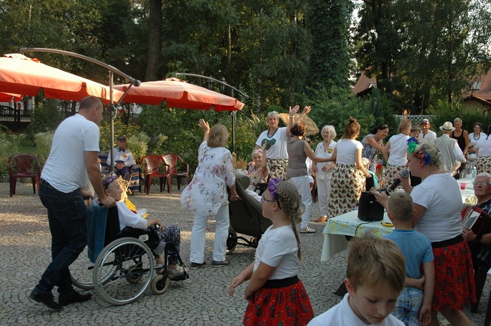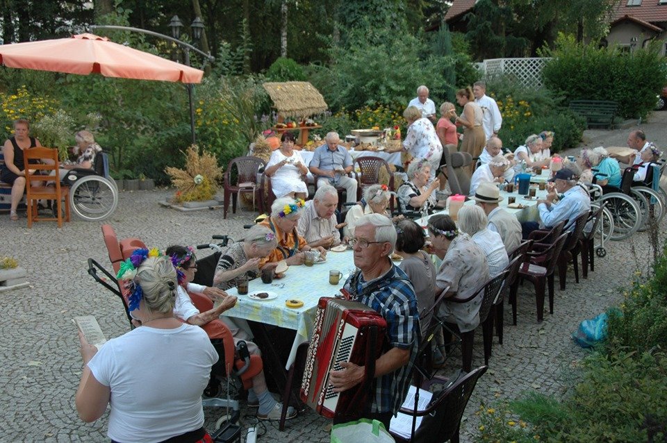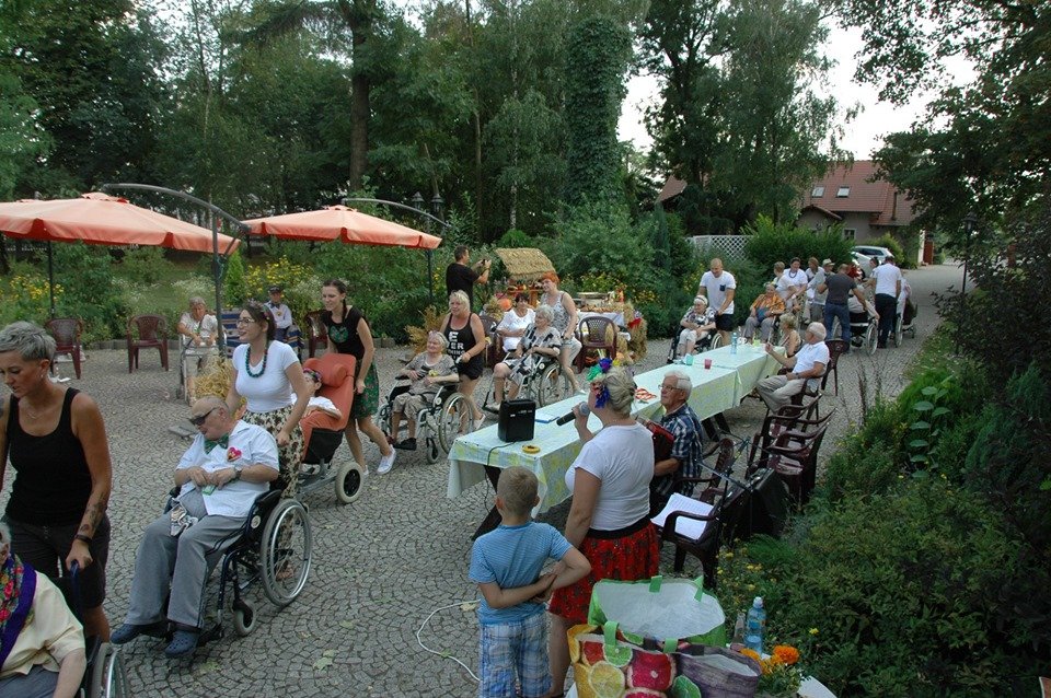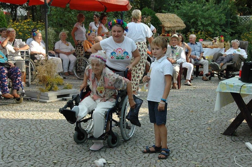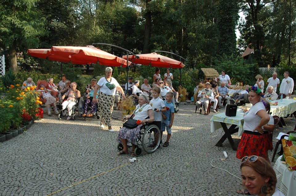 Polubiliśmy tę naszą tradycję corocznej "zabawy w dożynki". Nie zbieramy ziarna - naszym plonem jest dobro. Przez cały rok obdarowujemy i czujemy się obdarowywani - więc jest komu i za co dziękować. Dziękujemy Panu Bogu i sobie nawzajem za to, że jesteśmy razem. Tę wdzięczność wyrażamy "na poważnie" ale też wspólną zabawą - były więc tańce, śpiewy, konkursy typu "rzut kaloszem". Nawiedziło nas żywiołowe i dziwnie znajome "koło gospodyń wiejskich". Przez nasz teren przemknął wózkowy "pociąg z daleka". Dożynkowa kuchnia serwowała placki ziemniaczane, racuchy, kiełbaski z grilla, chleb ze smalcem i kiszonym ogórkiem. Dopisały humory i dobre nastroje. Piękne jest to, że otacza nas coraz szersza i coraz wierniejsza grupa "przyjaciół naszego domu": pani Ewa, pan Janek, Marzena i Marzenka,Dorota, Szymon, Patrycja i Krzysztof, Darek, Justyna i Karolina, Mirek i Justyna. Wszystkim bardzo bardzo dziękujemy - za każdy dobry gest, życzliwość i pomoc. Szczególną "kopalnią pomysłów" i żywiołowości była nasza najlepsza na świecie "załoga" - dzięki niej wciąż na nowo odkrywamy i poszerzamy znaczenie słowa "opiekun". Popatrzmy na zdjęcia, powspominajmy, cieszmy się tym co przeżywamy - bo przecież tak właśnie tworzymy nasz świat. A za rok? - oczywiście wszystkich do nas zapraszamy - w następny dożynkowy czas.