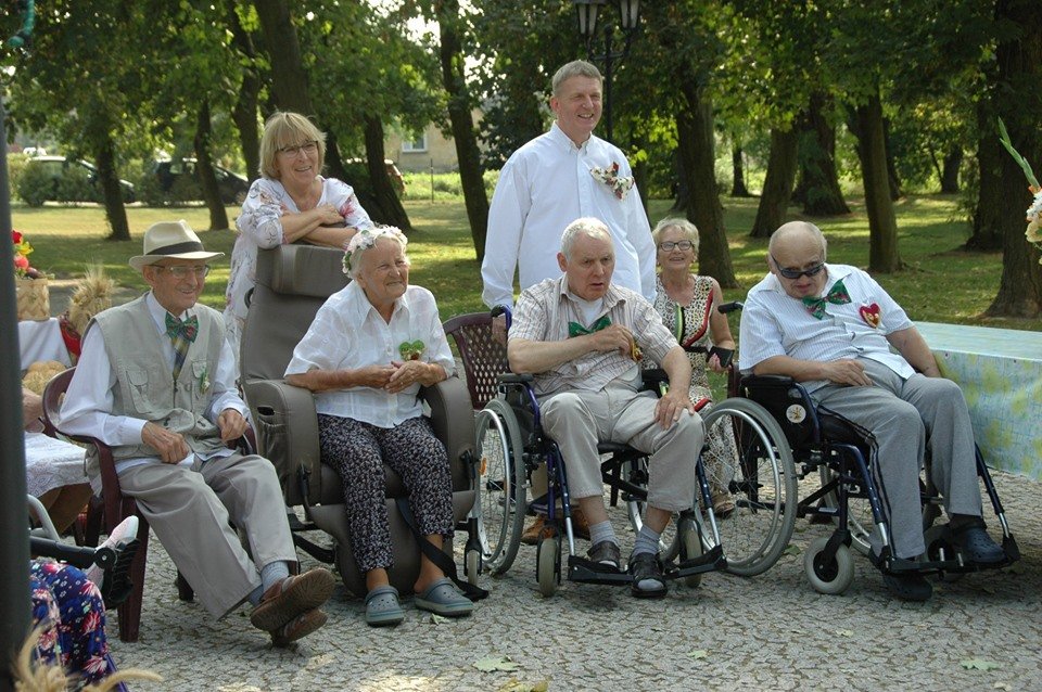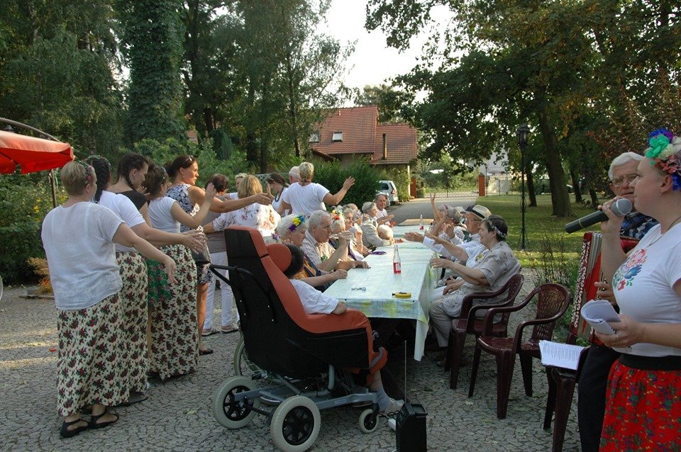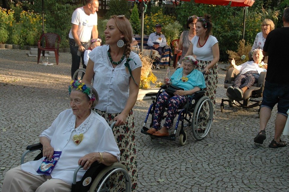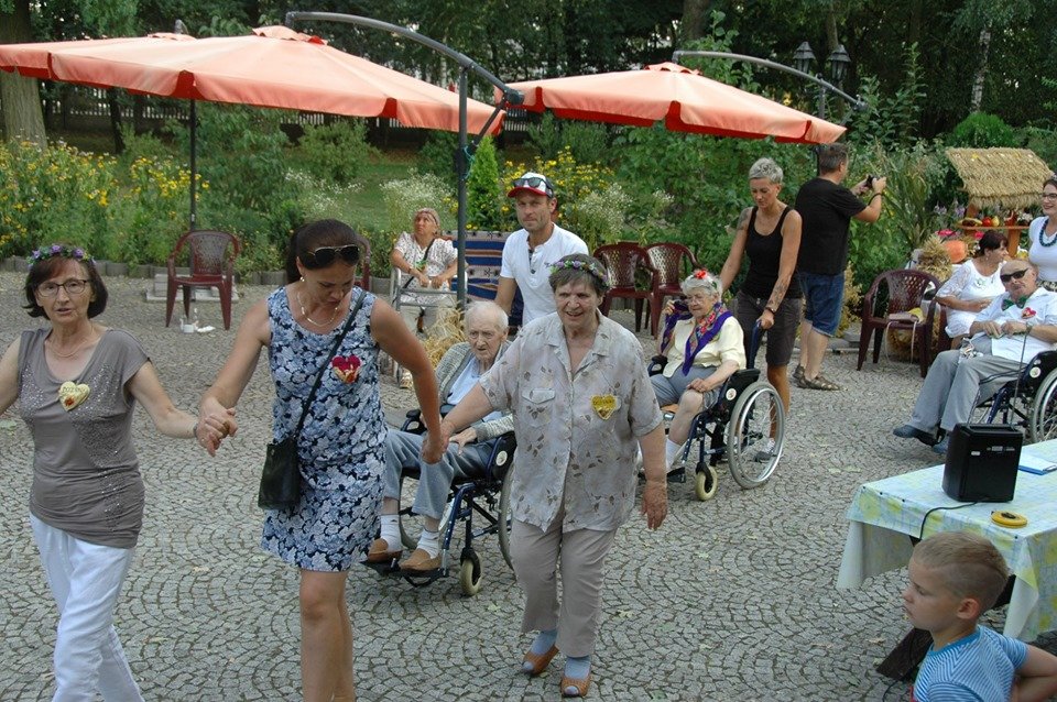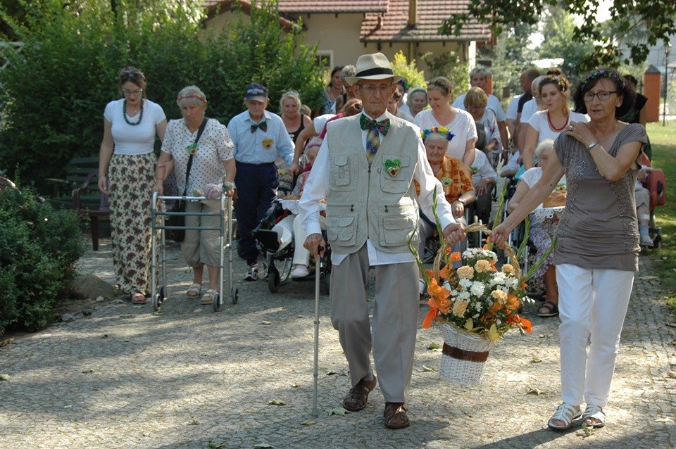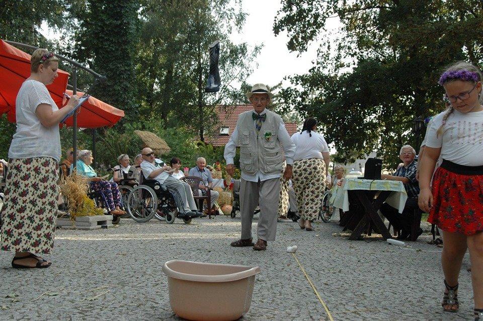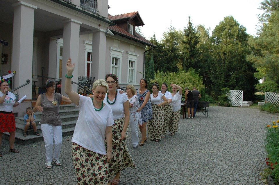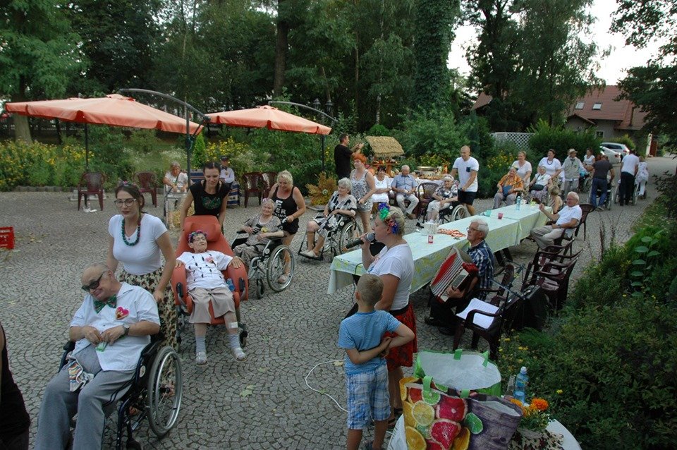Polubiliśmy tę naszą tradycję corocznej "zabawy w dożynki". Nie zbieramy ziarna - naszym plonem jest dobro. Przez cały rok obdarowujemy i czujemy się obdarowywani - więc jest komu i za co dziękować. Dziękujemy Panu Bogu i sobie nawzajem za to, że jesteśmy razem. Tę wdzięczność wyrażamy "na poważnie" ale też wspólną zabawą - były więc tańce, śpiewy, konkursy typu "rzut kaloszem". Nawiedziło nas żywiołowe i dziwnie znajome "koło gospodyń wiejskich". Przez nasz teren przemknął wózkowy "pociąg z daleka". Dożynkowa kuchnia serwowała placki ziemniaczane, racuchy, kiełbaski z grilla, chleb ze smalcem i kiszonym ogórkiem. Dopisały humory i dobre nastroje. Piękne jest to, że otacza nas coraz szersza i coraz wierniejsza grupa "przyjaciół naszego domu": pani Ewa, pan Janek, Marzena i Marzenka,Dorota, Szymon, Patrycja i Krzysztof, Darek, Justyna i Karolina, Mirek i Justyna. Wszystkim bardzo bardzo dziękujemy - za każdy dobry gest, życzliwość i pomoc. Szczególną "kopalnią pomysłów" i żywiołowości była nasza najlepsza na świecie "załoga" - dzięki niej wciąż na nowo odkrywamy i poszerzamy znaczenie słowa "opiekun". Popatrzmy na zdjęcia, powspominajmy, cieszmy się tym co przeżywamy - bo przecież tak właśnie tworzymy nasz świat. A za rok? - oczywiście wszystkich do nas zapraszamy - w następny dożynkowy czas.