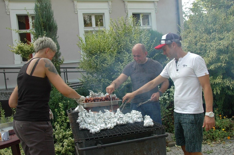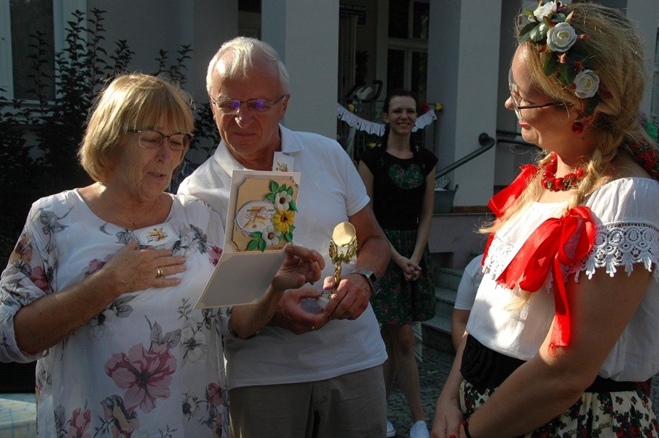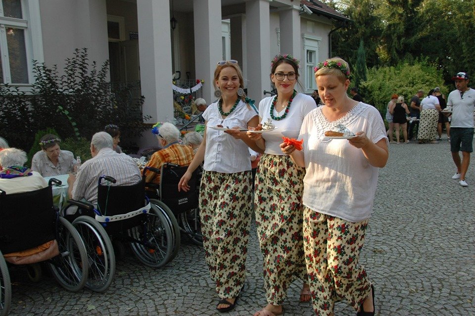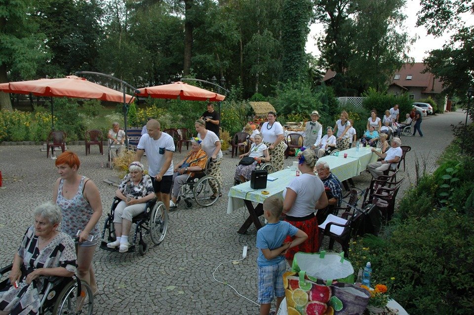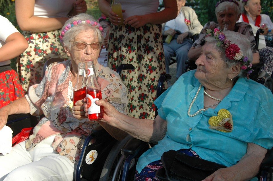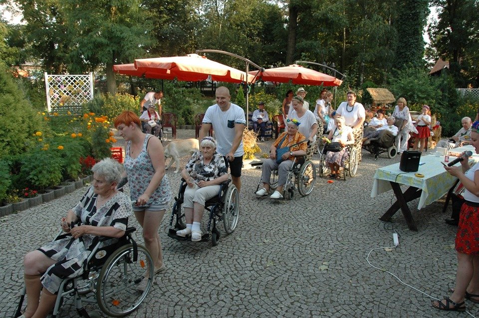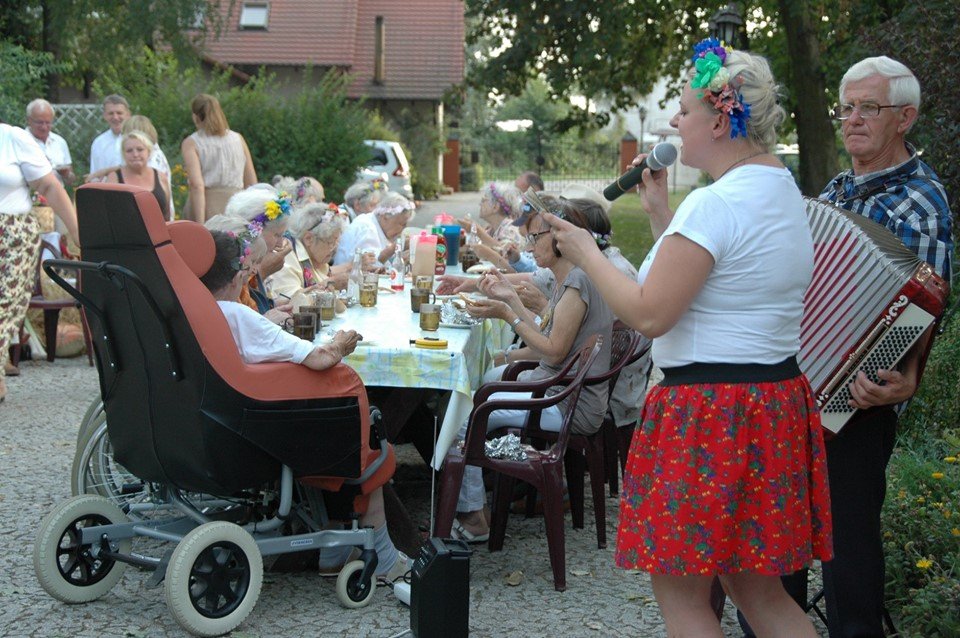 Polubiliśmy tę naszą tradycję corocznej "zabawy w dożynki". Nie zbieramy ziarna - naszym plonem jest dobro. Przez cały rok obdarowujemy i czujemy się obdarowywani - więc jest komu i za co dziękować. Dziękujemy Panu Bogu i sobie nawzajem za to, że jesteśmy razem. Tę wdzięczność wyrażamy "na poważnie" ale też wspólną zabawą - były więc tańce, śpiewy, konkursy typu "rzut kaloszem". Nawiedziło nas żywiołowe i dziwnie znajome "koło gospodyń wiejskich". Przez nasz teren przemknął wózkowy "pociąg z daleka". Dożynkowa kuchnia serwowała placki ziemniaczane, racuchy, kiełbaski z grilla, chleb ze smalcem i kiszonym ogórkiem. Dopisały humory i dobre nastroje. Piękne jest to, że otacza nas coraz szersza i coraz wierniejsza grupa "przyjaciół naszego domu": pani Ewa, pan Janek, Marzena i Marzenka,Dorota, Szymon, Patrycja i Krzysztof, Darek, Justyna i Karolina, Mirek i Justyna. Wszystkim bardzo bardzo dziękujemy - za każdy dobry gest, życzliwość i pomoc. Szczególną "kopalnią pomysłów" i żywiołowości była nasza najlepsza na świecie "załoga" - dzięki niej wciąż na nowo odkrywamy i poszerzamy znaczenie słowa "opiekun". Popatrzmy na zdjęcia, powspominajmy, cieszmy się tym co przeżywamy - bo przecież tak właśnie tworzymy nasz świat. A za rok? - oczywiście wszystkich do nas zapraszamy - w następny dożynkowy czas.