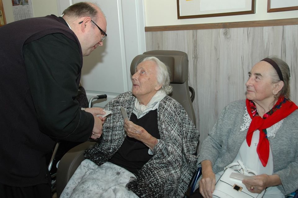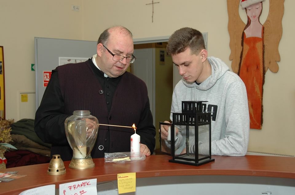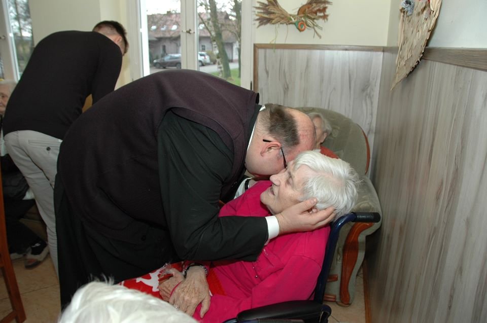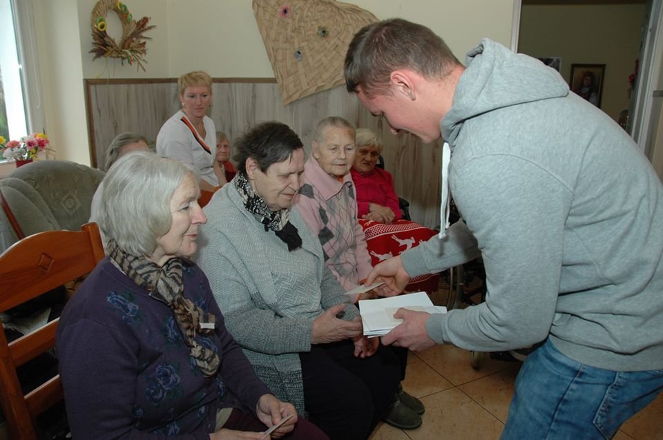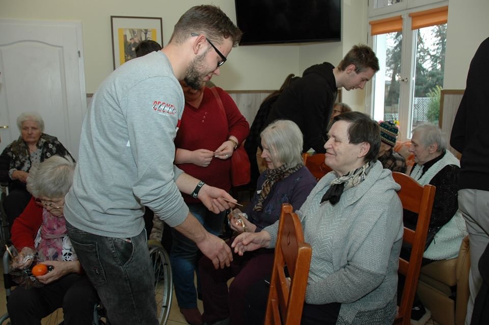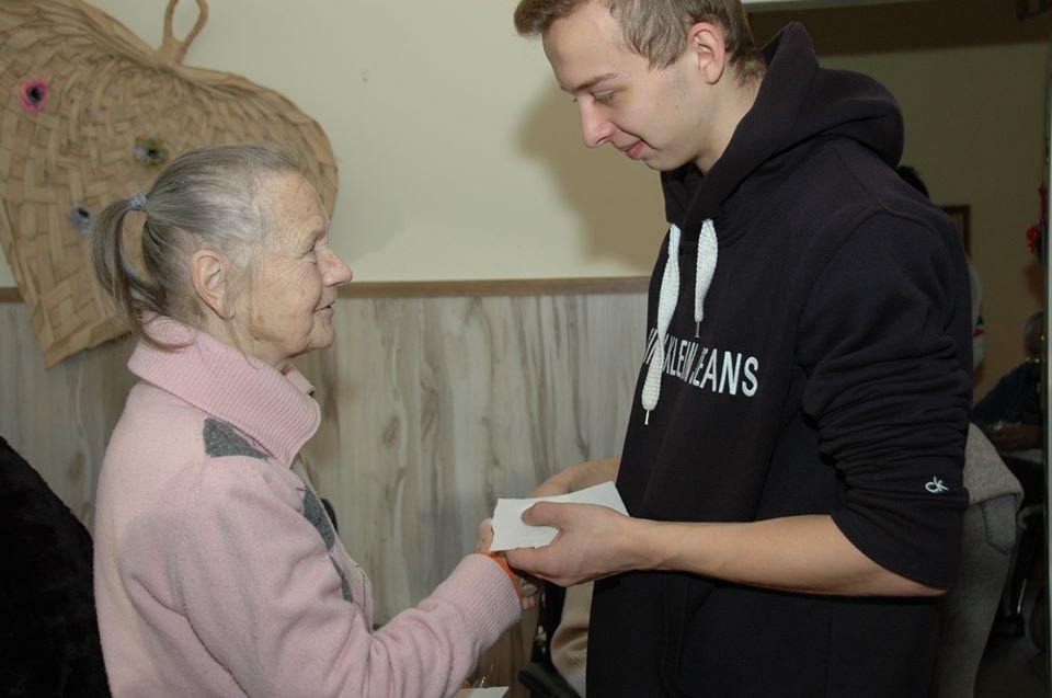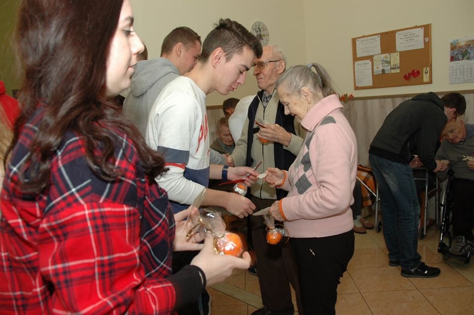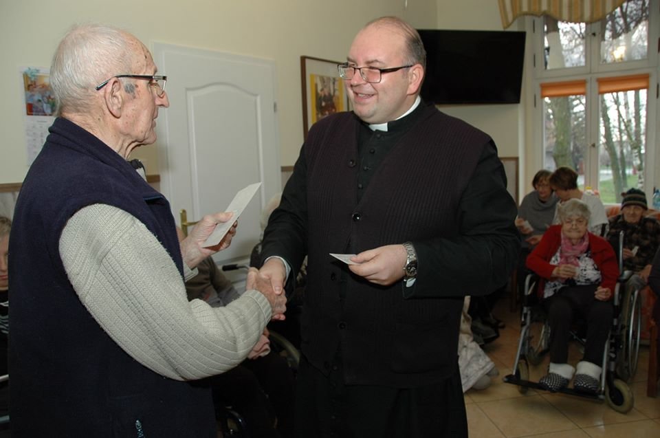 W ten przedświąteczny czas odwiedzili nas uczniowie Zespołu Szkół im. Powstańców Wielkopolskich w Bielicach w ramach wolontariatu "Popiół i Diament Szlachetnych Serc" pod opieką Ks. Marcina Maciejewskiego i Pani Agnieszki Jakubowskiej. Wspaniali młodzi ludzie - pełni odwagi i śmiałości w relacji do starszych, schorowanych osób. Pełni dobra - niby tak zwyczajnego, a jednak miło zaskakującego gdy się je spotyka. Tak lubimy powtarzać to nasze zdanie, że "świat nie zginie dopóki wciąż są jeszcze dobrzy młodzi ludzie". Bardzo dziękujemy za wszystko - za opłatek, za rozczulające dary, za te parę słów, za przywiezione betlejemskie światło pokoju. Gratulujemy pani Agnieszce i księdzu Marcinowi. Wszystkim życzymy radości.
