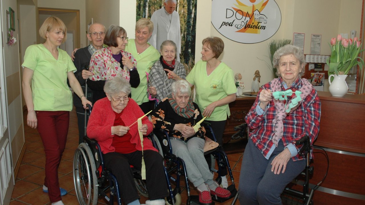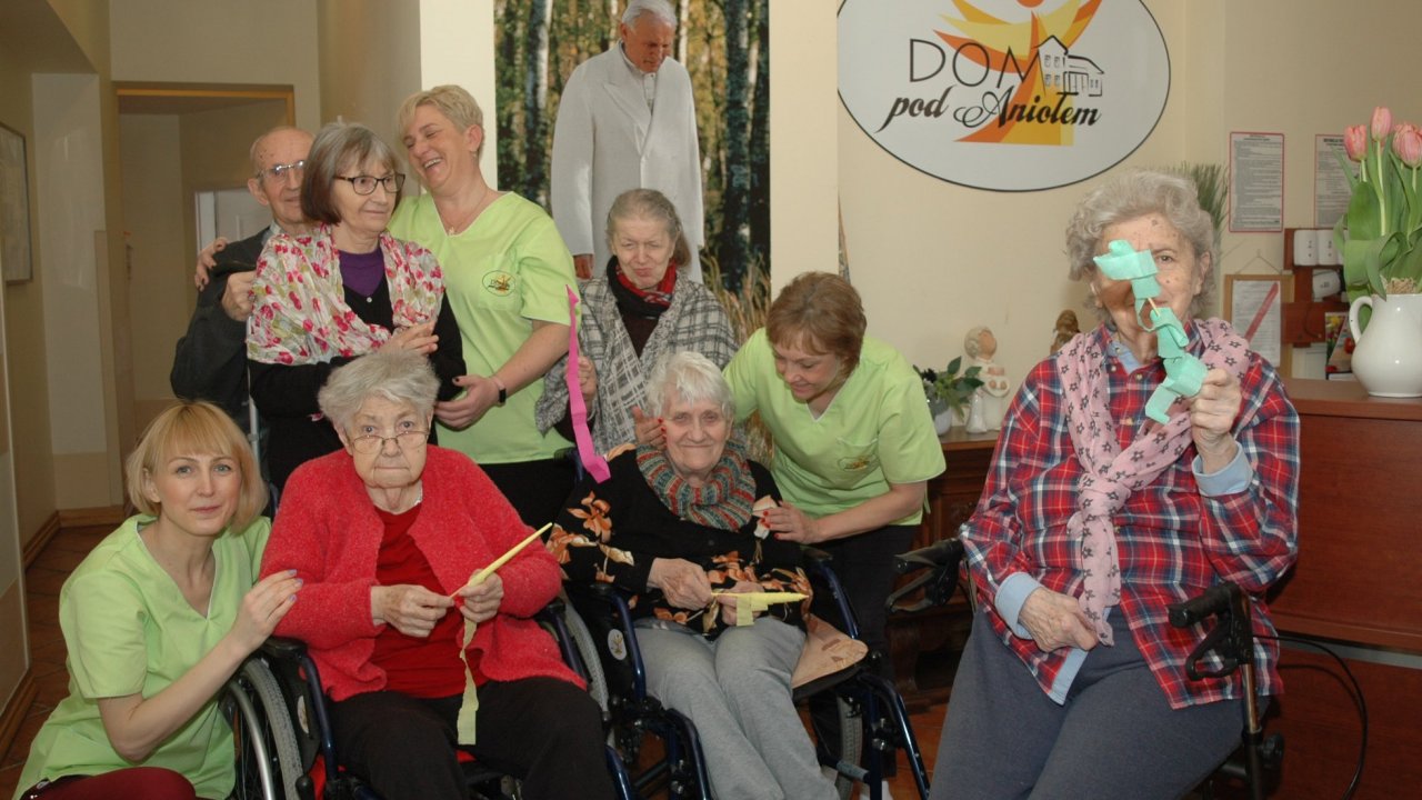 Tęsknimy za Wami - "całkowity zakaz odwiedzin " to dziwny czas w domu, do którego wciąż ktoś przychodził. Dlatego postanowiliśmy zrobić "sesję zdjęciową" i pokazać się Wam - że jesteśmy, trwamy, uśmiechamy się do Was i do siebie nawzajem. Czujemy się dobrze, codzienność biegnie swoim rytmem - niektórzy "łapią" pierwsze słoneczka na werandzie, niektórzy mają "figle w głowach", niektórzy zmienili profesję i zajmują się kuchnią. Nasze opiekunki dzielnie "trwają na posterunkach" - za co im bardzo, bardzo dziękujemy. Serdecznie pozdrawiamy wszystkich "naszych fanów", znajomych, nasze rodziny, przyjaciół - wszystkim życzymy zdrowia i Bożej Opieki.