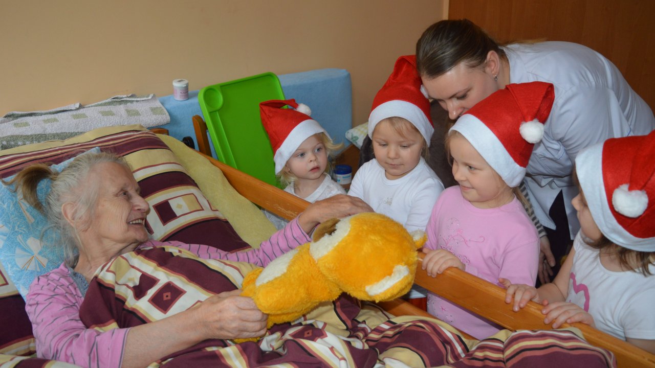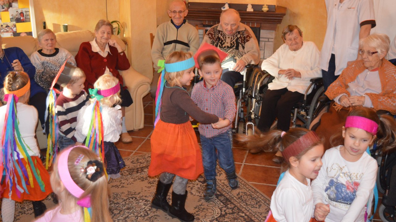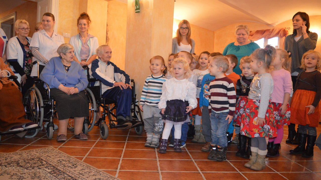 Odwiedziły nas dzieci z Placówki Wsparcia Dziennego w Czerniejewie. Te dwa pokolenia – maluszkowie i staruszkowie – wzajemnie się przyciągają i są sobie wzajemnie wręcz niezbędni. W naszym Domu wielokrotnie tego doświadczamy. Tym razem rzeczywiście okazało się, że każdy może być Świętym Mikołajem i nie było w tym żadnego sloganu – wystarczyła radość dzieci, ich rozbrajająca szczerość, brak lęku, spojrzenia czystych oczu – sama ich OBECNOŚĆ była prawdziwym darem. Dziękujemy.