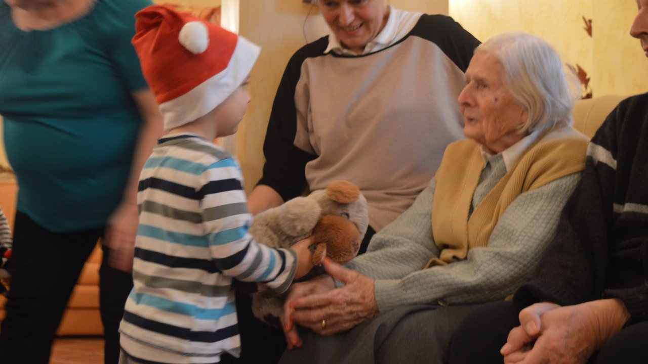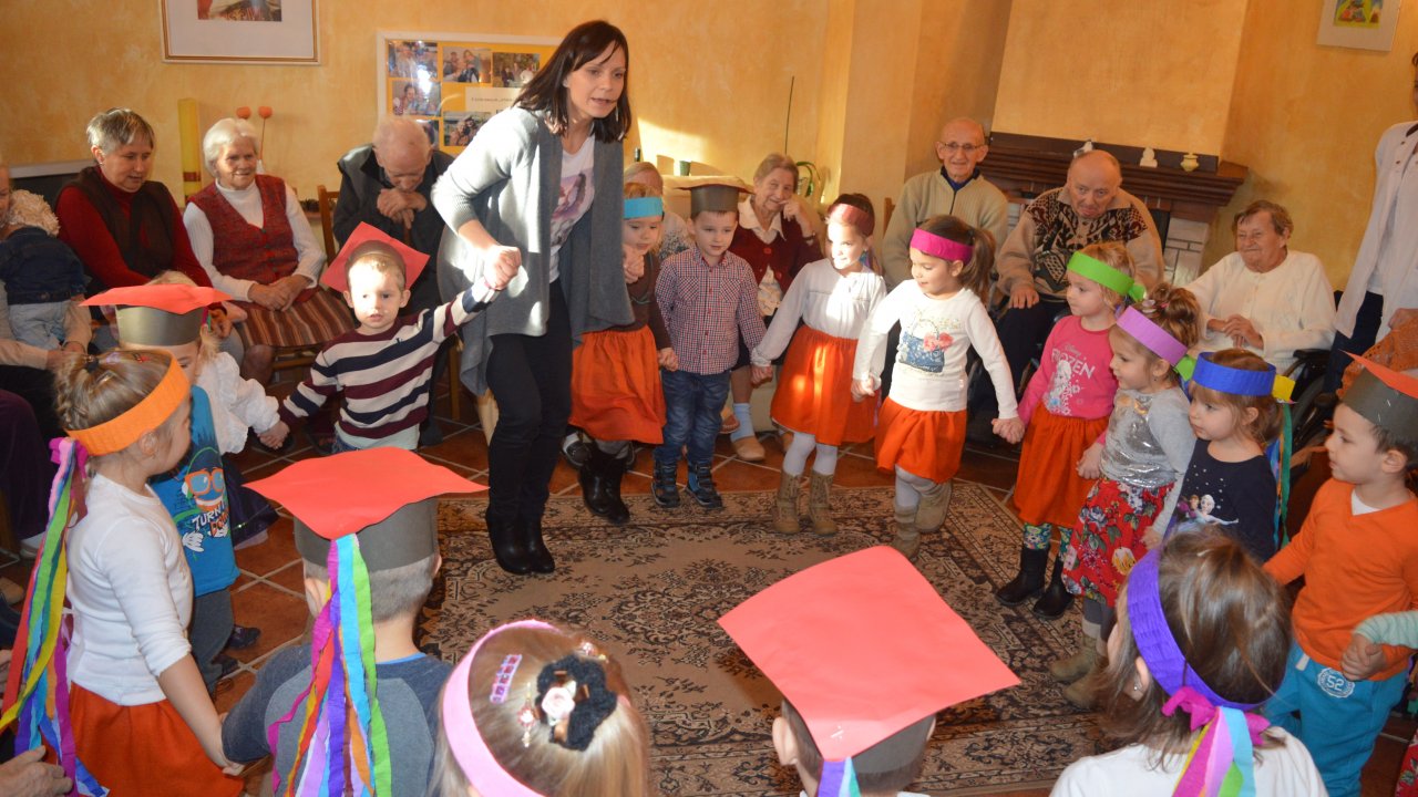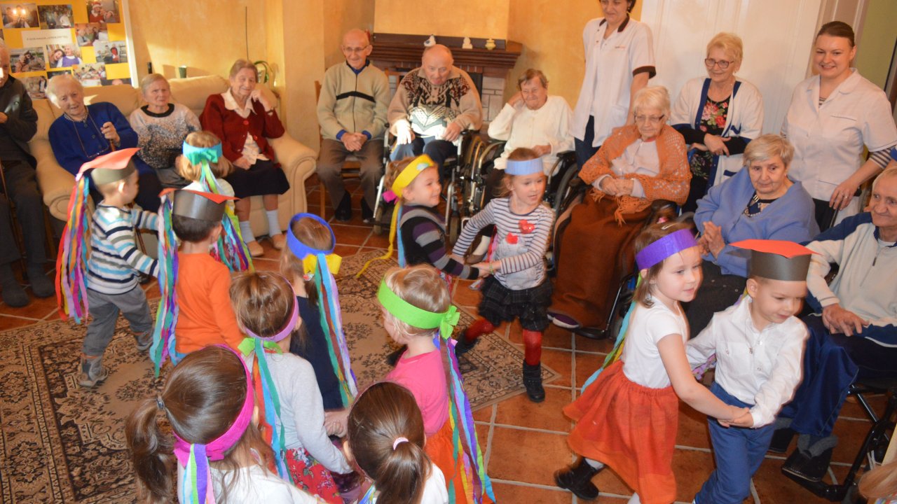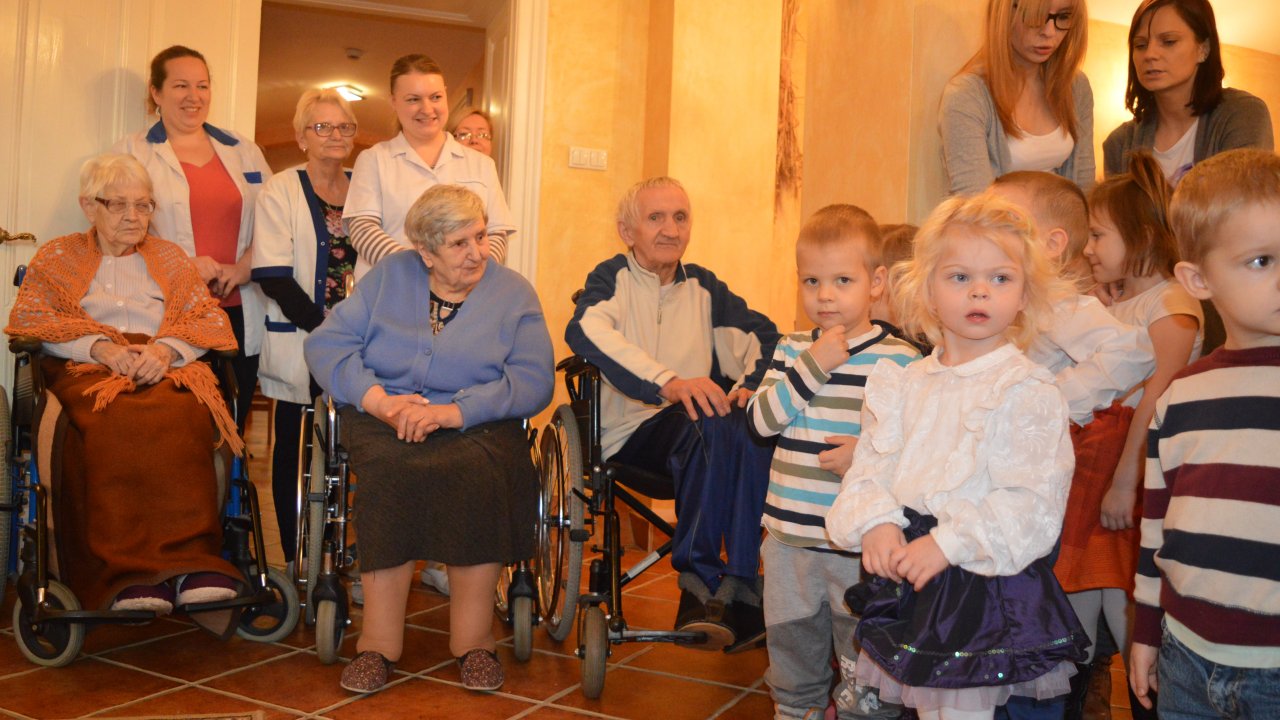 Odwiedziły nas dzieci z Placówki Wsparcia Dziennego w Czerniejewie. Te dwa pokolenia – maluszkowie i staruszkowie – wzajemnie się przyciągają i są sobie wzajemnie wręcz niezbędni. W naszym Domu wielokrotnie tego doświadczamy. Tym razem rzeczywiście okazało się, że każdy może być Świętym Mikołajem i nie było w tym żadnego sloganu – wystarczyła radość dzieci, ich rozbrajająca szczerość, brak lęku, spojrzenia czystych oczu – sama ich OBECNOŚĆ była prawdziwym darem. Dziękujemy.