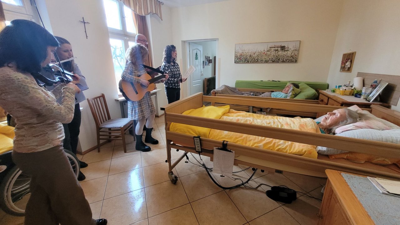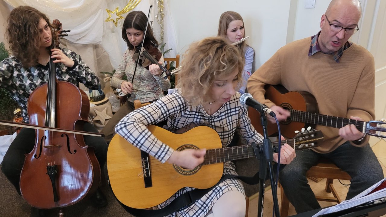 Dlatego tak bardzo ucieszyła nas ostatnio rodzina Pani Izabellki – przywieźli instrumenty, zaśpiewali, zatupali i od razu cały dom wypełnił się kolędowym gwarem. Pani Magda i pan Arek, Hania, Ula i Tereska – niezwykli ludzie, bo wystarczy, że są - a świat wokół nich nabiera muzy i koloru. Bardzo wam dziękujemy – i nucimy po góralsku: “Zycymy Wom zdrowio nojlepsego, a do tego siły, do koździćkiyj zyły, w kozdym roku-a my Wom zycymy a my Wom zycymy scyńścio zdrowio.”