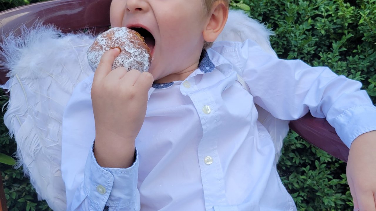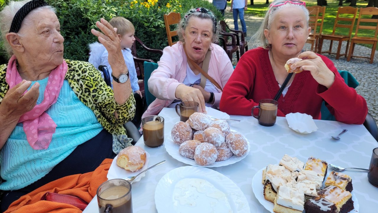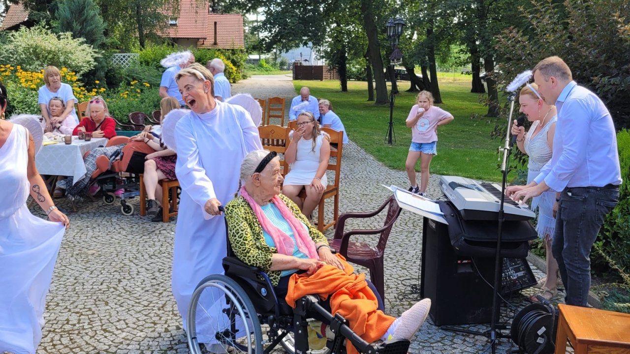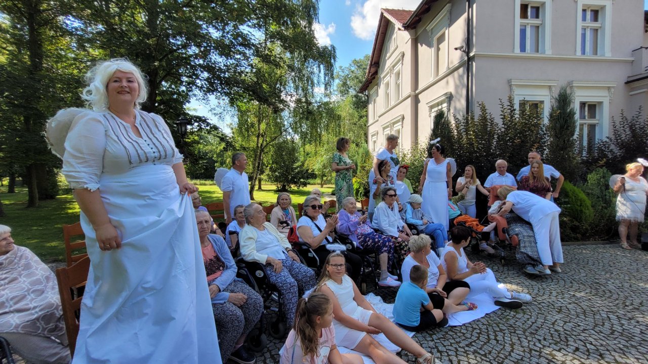 Przeżywaliśmy dzisiaj święto wszystkich babć, dziadków i seniorów - chcemy włączyć się w tworzenie nowej tradycji zainspirowanej przez papieża Franciszka, by to święci Joachim i Anna byli patronami święta osób starszych- wszak to oni właśnie byli dziadkami Pana Jezusa. Nazwa naszego domu zobowiązuje - więc był "zlot aniołów", były przepyszne pączki, serniczki, lody - było granie, śpiewanie i pląsanie.
