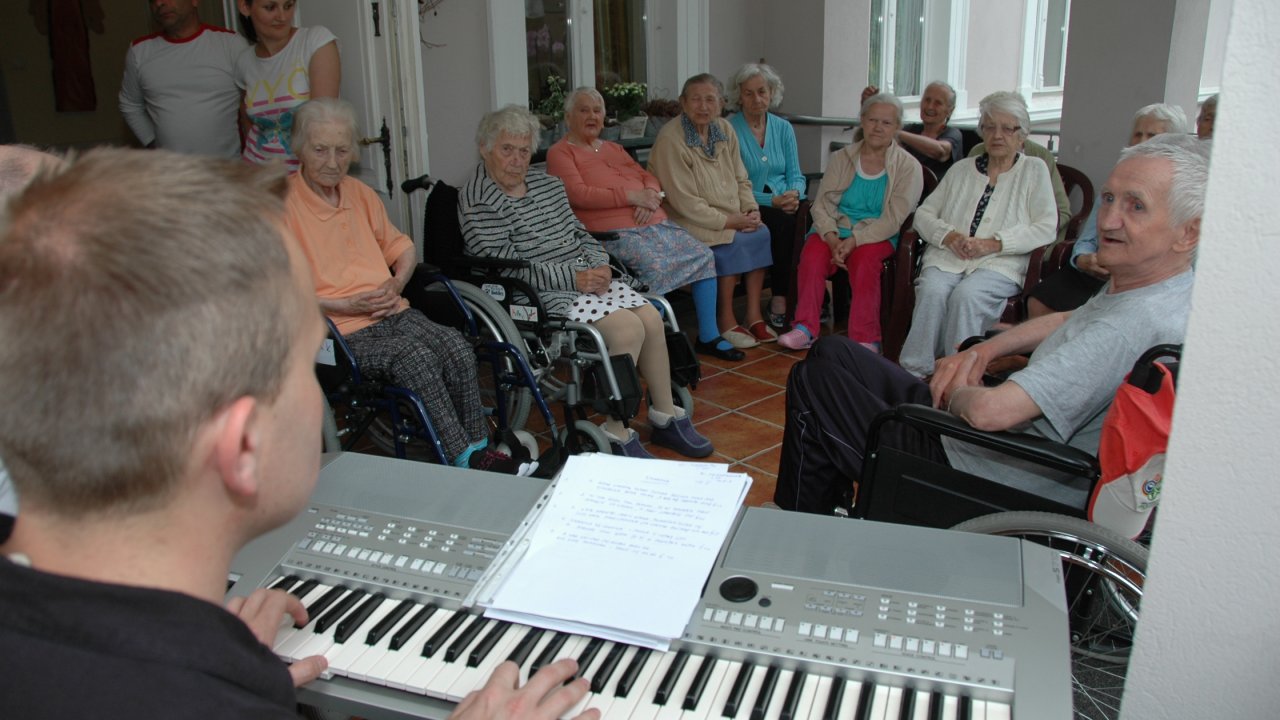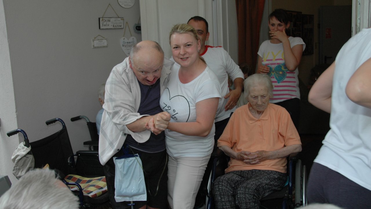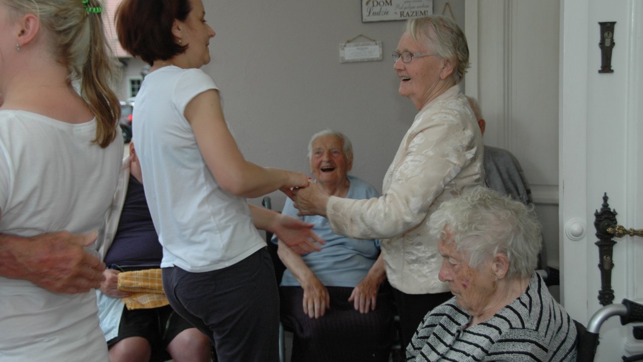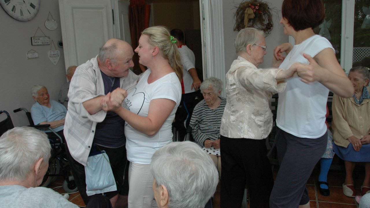 Weranda zawsze nam się dobrze kojarzy – można na niej posiedzieć w pochmurny dzień, nie trzeba daleko iść, gdy bolą nogi, świetnie się na niej śpiewa – a nawet tańczy! – szczególnie, gdy pan Bartek rozstawi „klawisze” i zaczyna grać piosenki z dawnych lat.