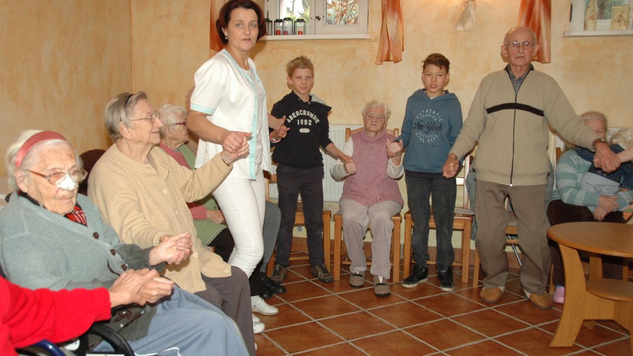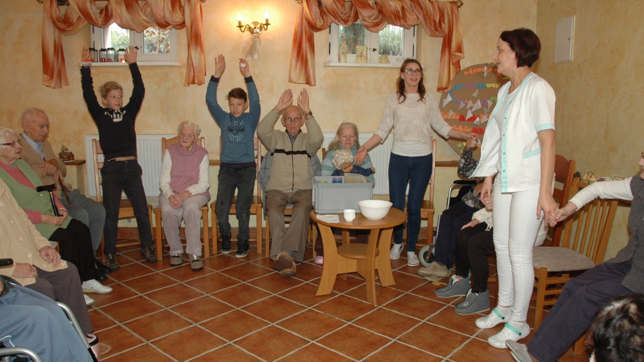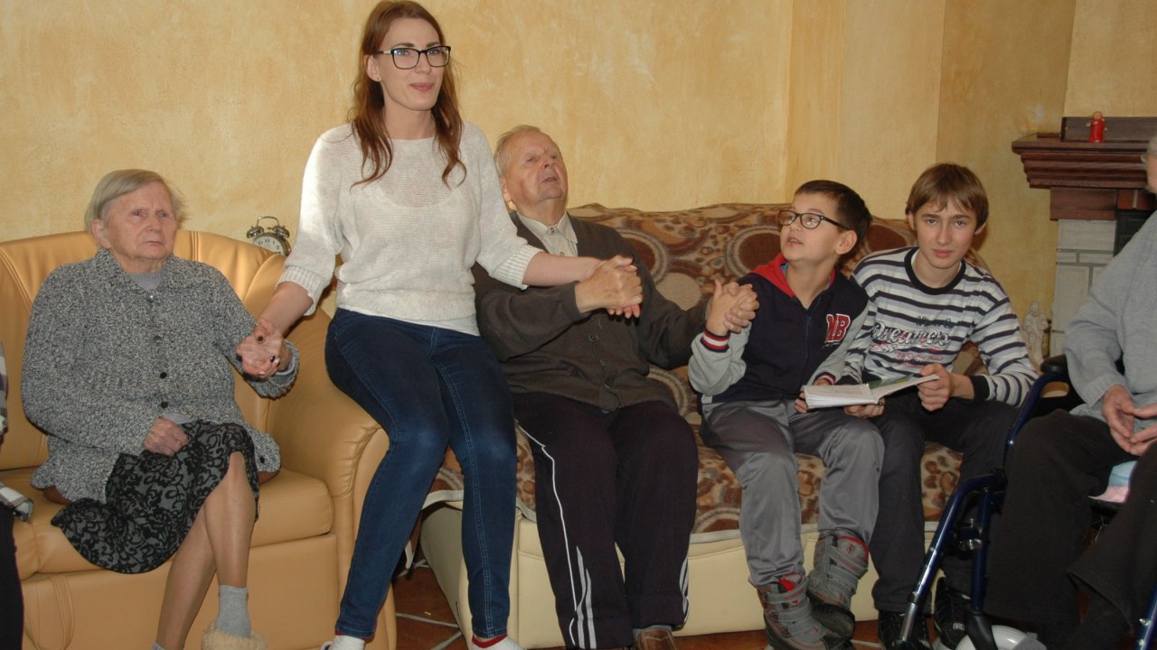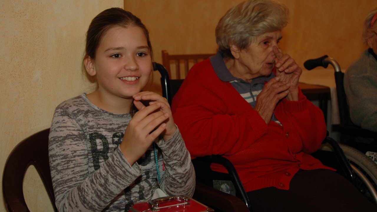 Mamy szczęście do dobrych dzieci – tym razem przyjechały do nas ze Szkoły Podstawowej Zakonu Pijarów w Poznaniu. Tyle wokół narzekania na dzieci i młodzież – a w naszym domu zawsze nas zaskakują swoją wrażliwością, odwagą, chęcią pomocy. Gotowością wspólnej zabawy z ludźmi starszymi od siebie o 80 lat. Przekraczaniem swojej nieśmiałości i lęku – gdy może po raz pierwszy w życiu chwyta się za wózek inwalidzki. Bardzo dziękujemy pani Grażynce, pani Krysi, Rodzicom i naszym młodym „opiekunom” za ten wspólny dobry czas.