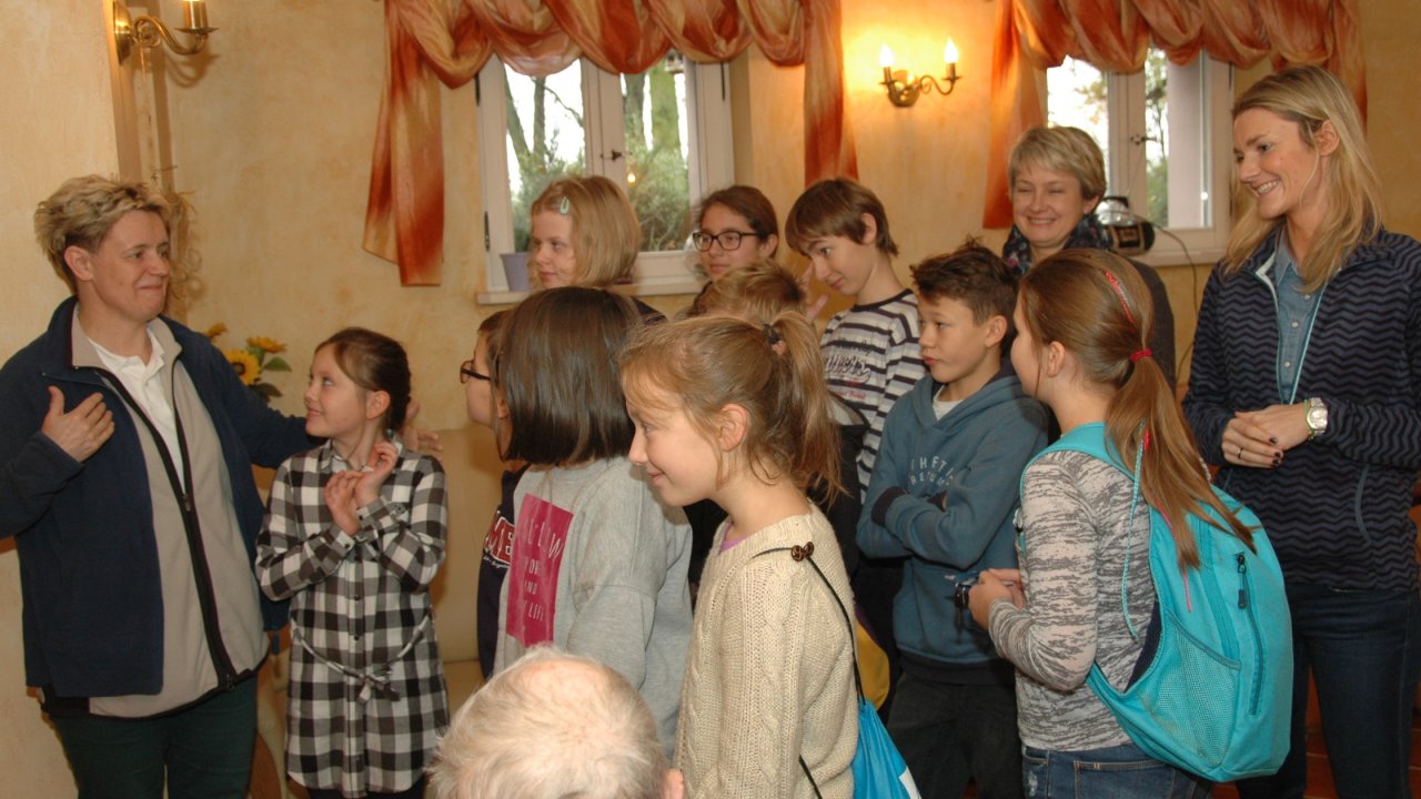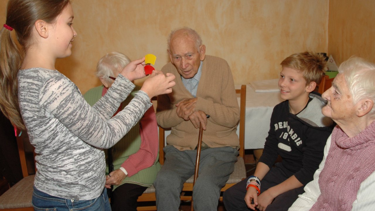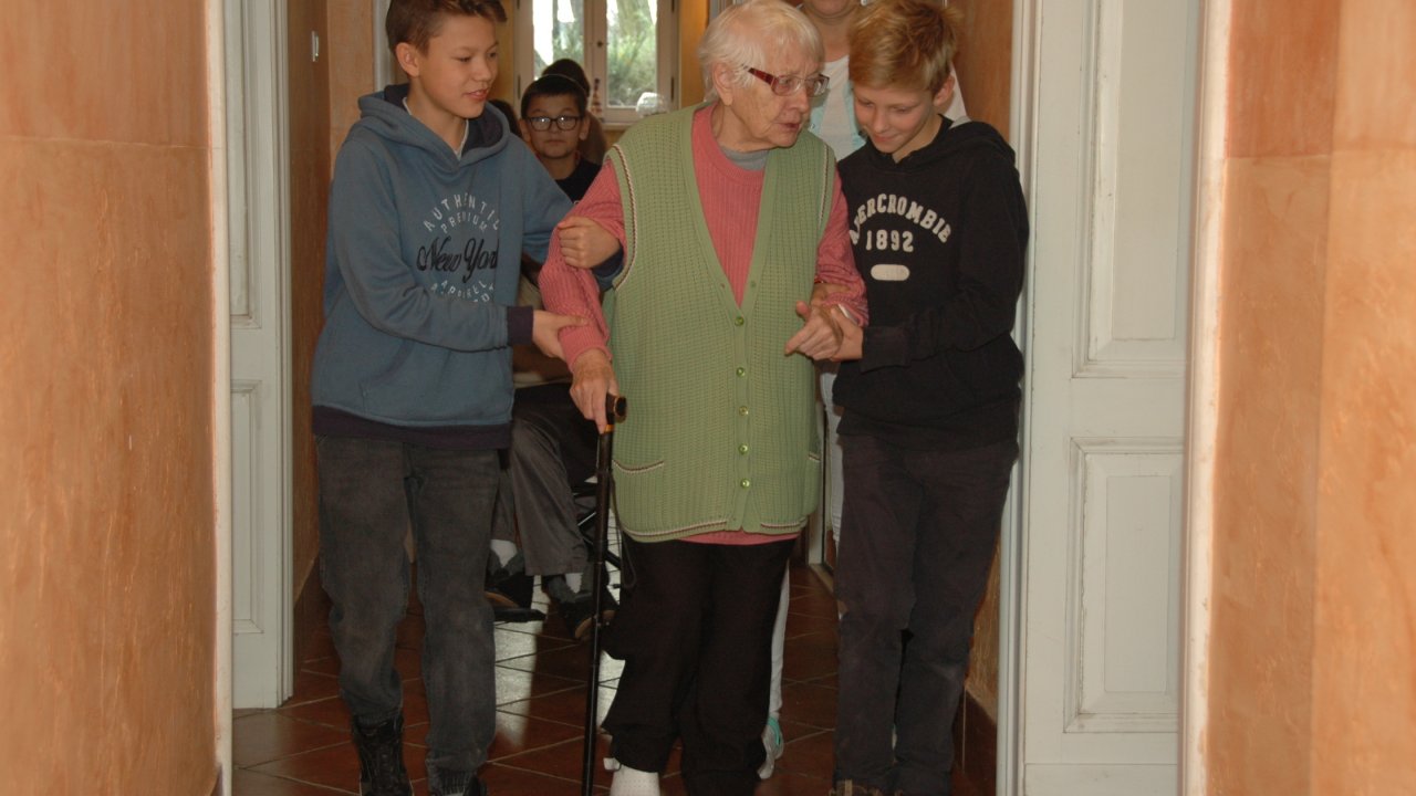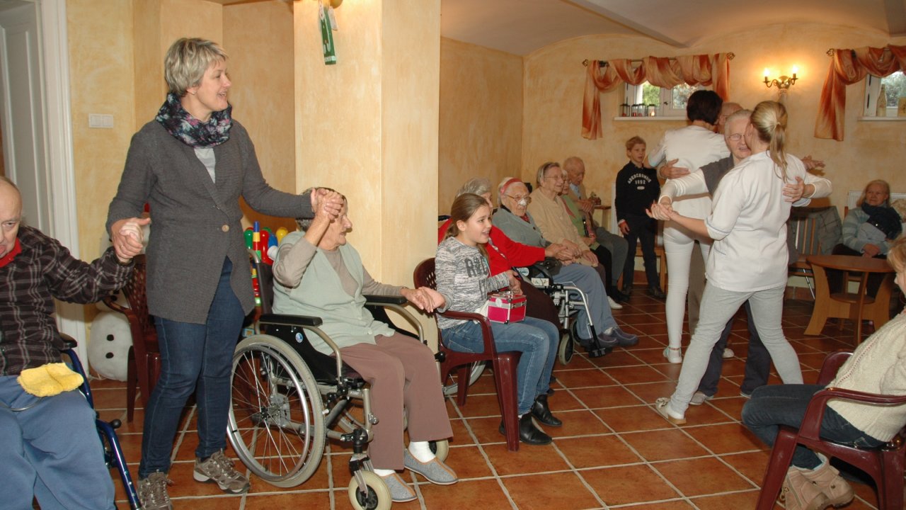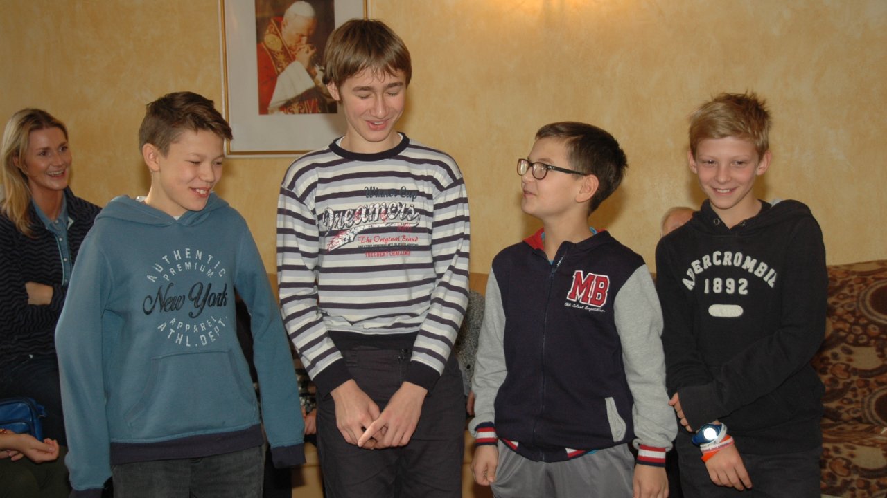 Mamy szczęście do dobrych dzieci – tym razem przyjechały do nas ze Szkoły Podstawowej Zakonu Pijarów w Poznaniu. Tyle wokół narzekania na dzieci i młodzież – a w naszym domu zawsze nas zaskakują swoją wrażliwością, odwagą, chęcią pomocy. Gotowością wspólnej zabawy z ludźmi starszymi od siebie o 80 lat. Przekraczaniem swojej nieśmiałości i lęku – gdy może po raz pierwszy w życiu chwyta się za wózek inwalidzki. Bardzo dziękujemy pani Grażynce, pani Krysi, Rodzicom i naszym młodym „opiekunom” za ten wspólny dobry czas.