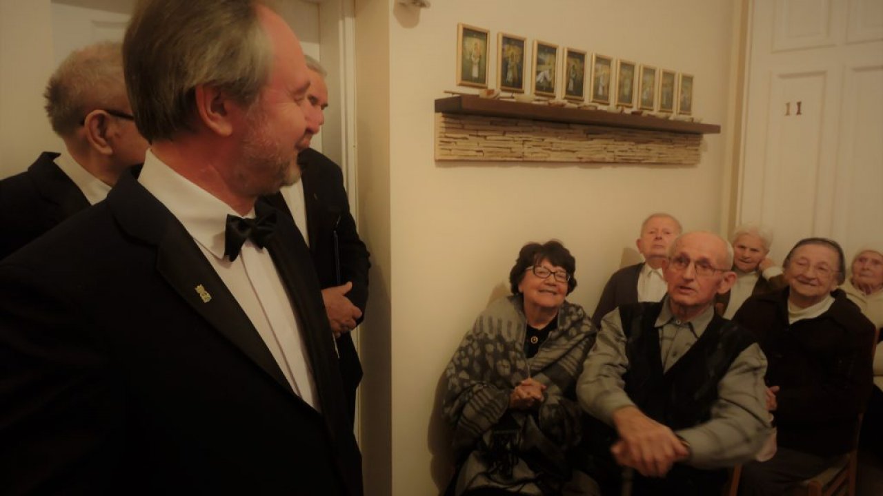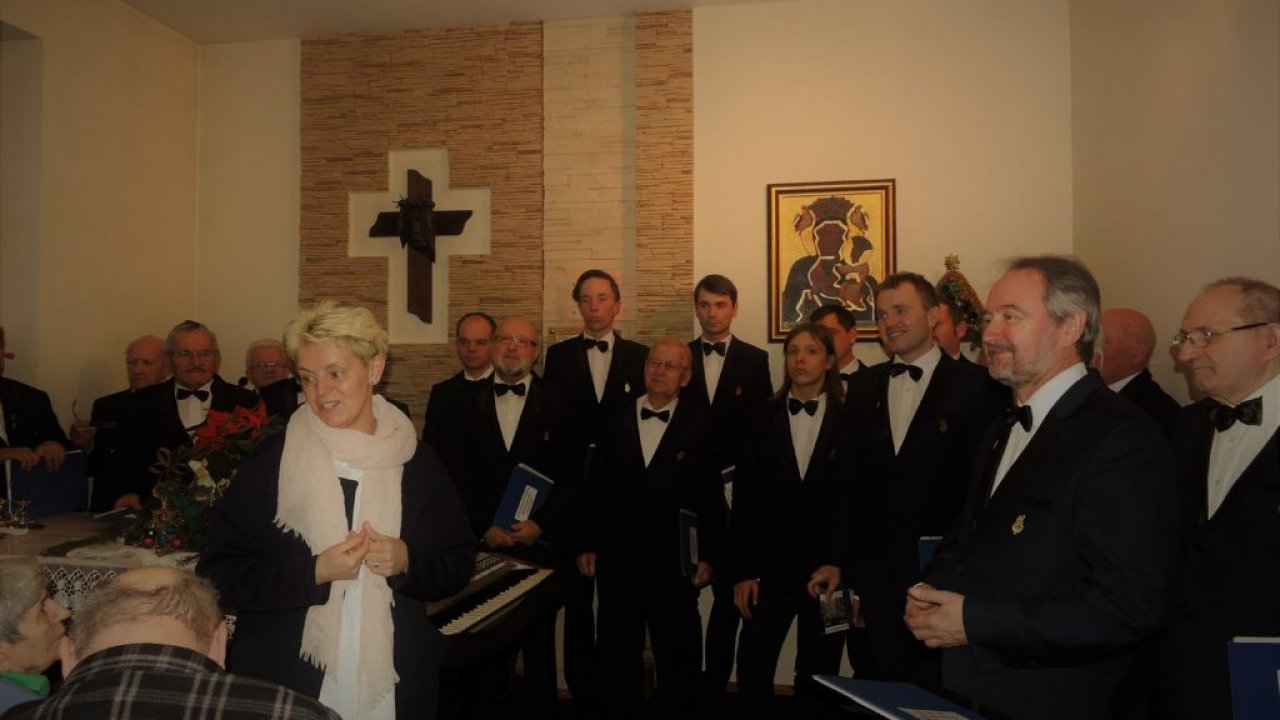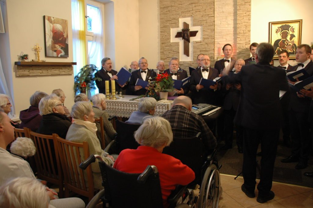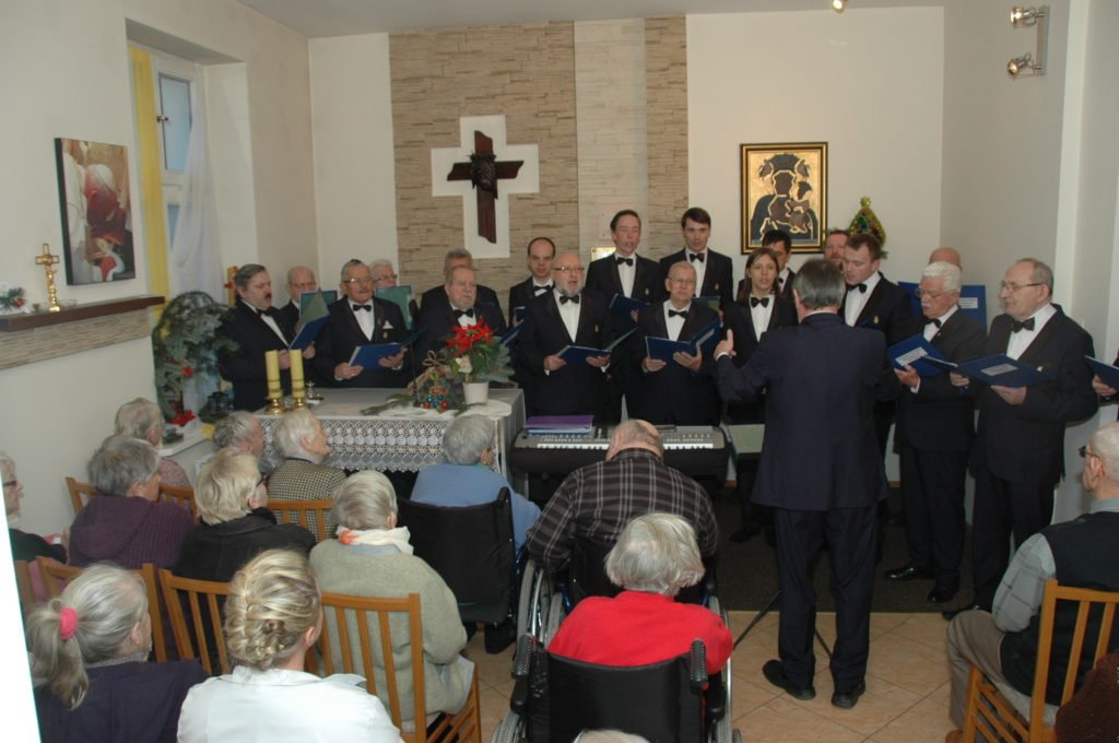 5 stycznia przyjechało do nas ponad dwudziestu eleganckich panów – Chór „Dzwon” z Gniezna. Panowie uraczyli nas koncertem kolęd ale wykonali także parę utworów patriotycznych. Robi wrażenie widok tylu śpiewających mężczyzn – nasze panie „z pierwszego rzędu” nie odrywały od nich oczu. A przy starych patriotycznych pieśniach w niejednym oku łza się zakręciła. Bardzo dziękujemy za to obdarowanielrlr nas dobrem – życzymy sukcesów – i oczywiście zapraszamy ponownie.