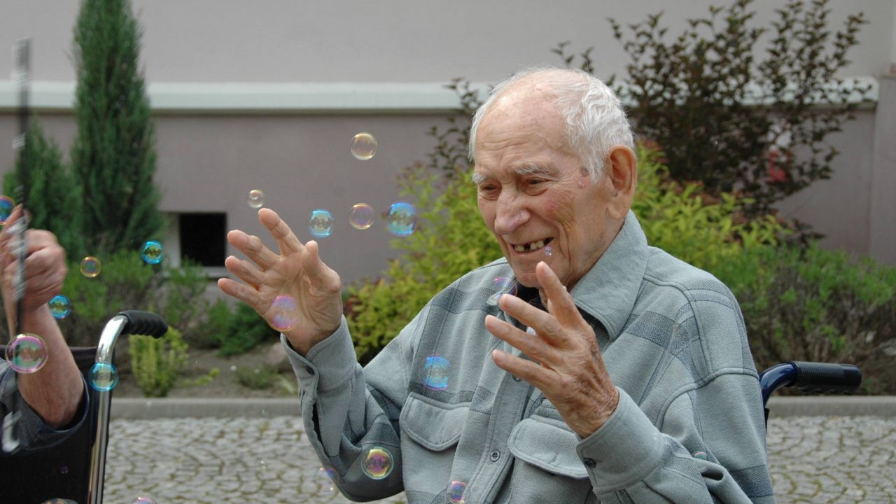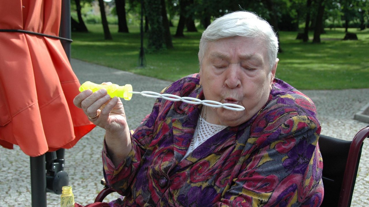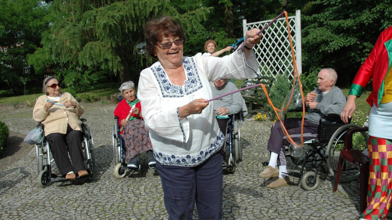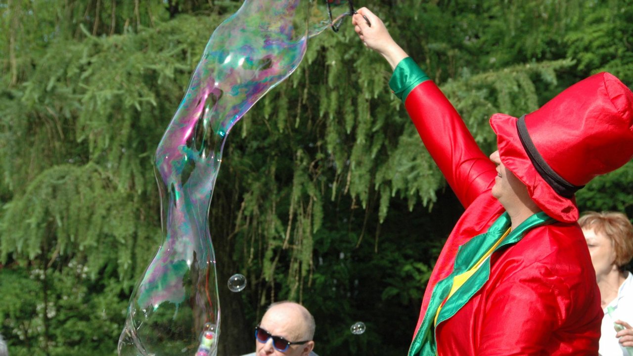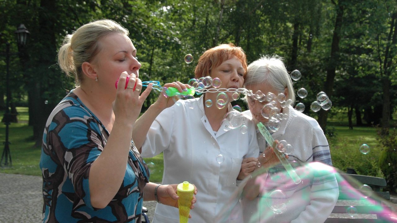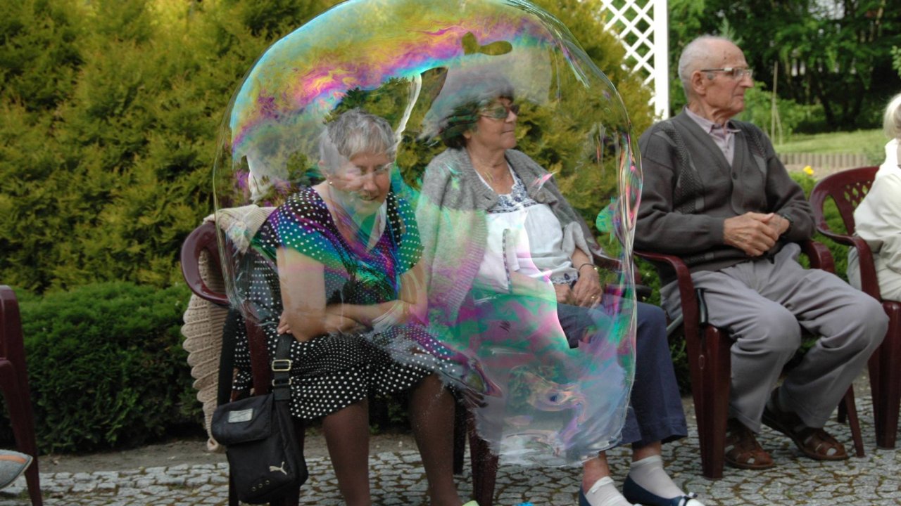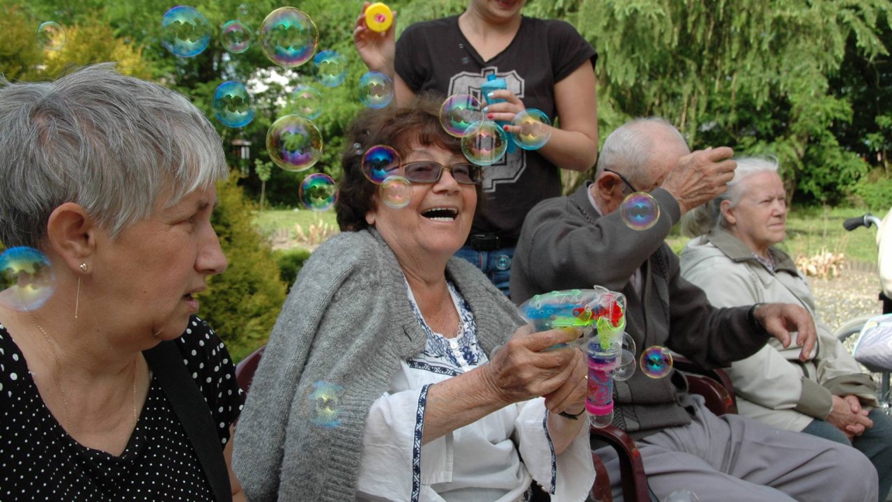 Wystarczyły mydlane bańki i od razu objawiło się, że w każdym z nas nadal jest wiele z dzieci. Pani Sylwia wyczarowała prawdziwą "inwazję" mydlanych cudów - małych, wielkich, kolorowo-bajecznych... Każdy chciał i mógł spróbować powrotu do dzieciństwa. Czasami zapominamy, że w bardzo prosty sposób można obudzić czystą dziecięcą radość. Zapraszamy na następny Dzień Dziecka w domu pełnym staruszków.