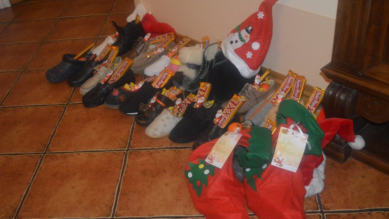 Lubimy ulegać Mikołajkowym "szaleństwom" - ten dzień uczy nie tylko pomagania, ale także nabierania "zdrowego" dystansu do samego siebie. Wszelkie papcie i bambosze wypełnione słodyczami (chociaż w niektórych znalazły się też jakieś pietruszki i marchewki. Na głowach powyrastały "gustowne reniferki" i czapki z pomponami. Dzisiaj wspomagała nas też "mocna ekipa" chłopców ze szkoły Zakonu Pijarów z Poznania. Zaskoczyli nas swoją otwartością, śmiałością, opowiadaniem o marzeniach. Może nie wiedzą jeszcze, kim będą w przyszłości - ale póki co, są pomocnikami Świętego Mikołaja i świetnie im to wychodzi. Dziękujemy i gratulujemy nauczycielom i rodzicom - a za całą szóstą "b" mocno trzymamy kciuki!