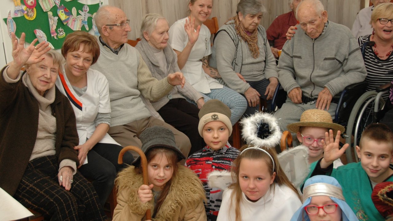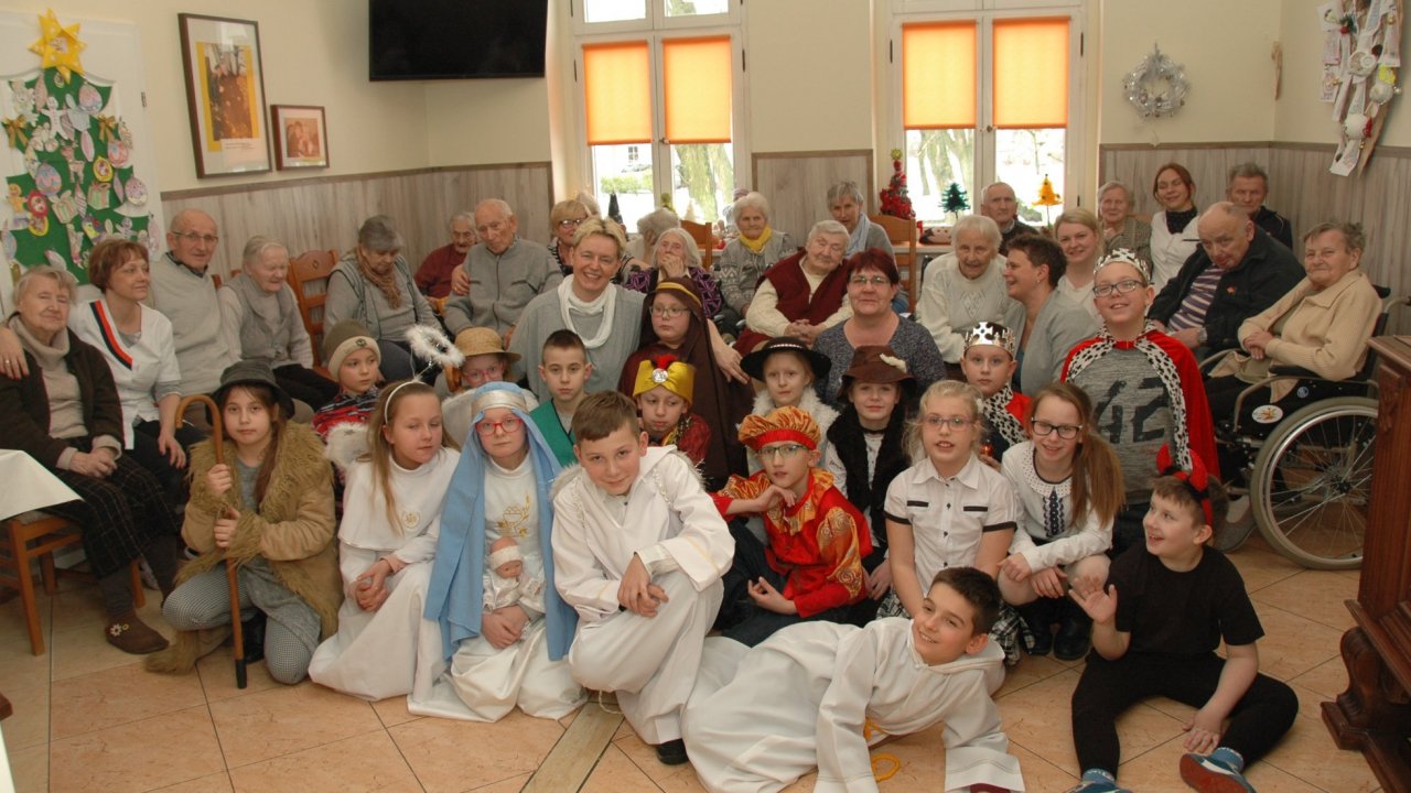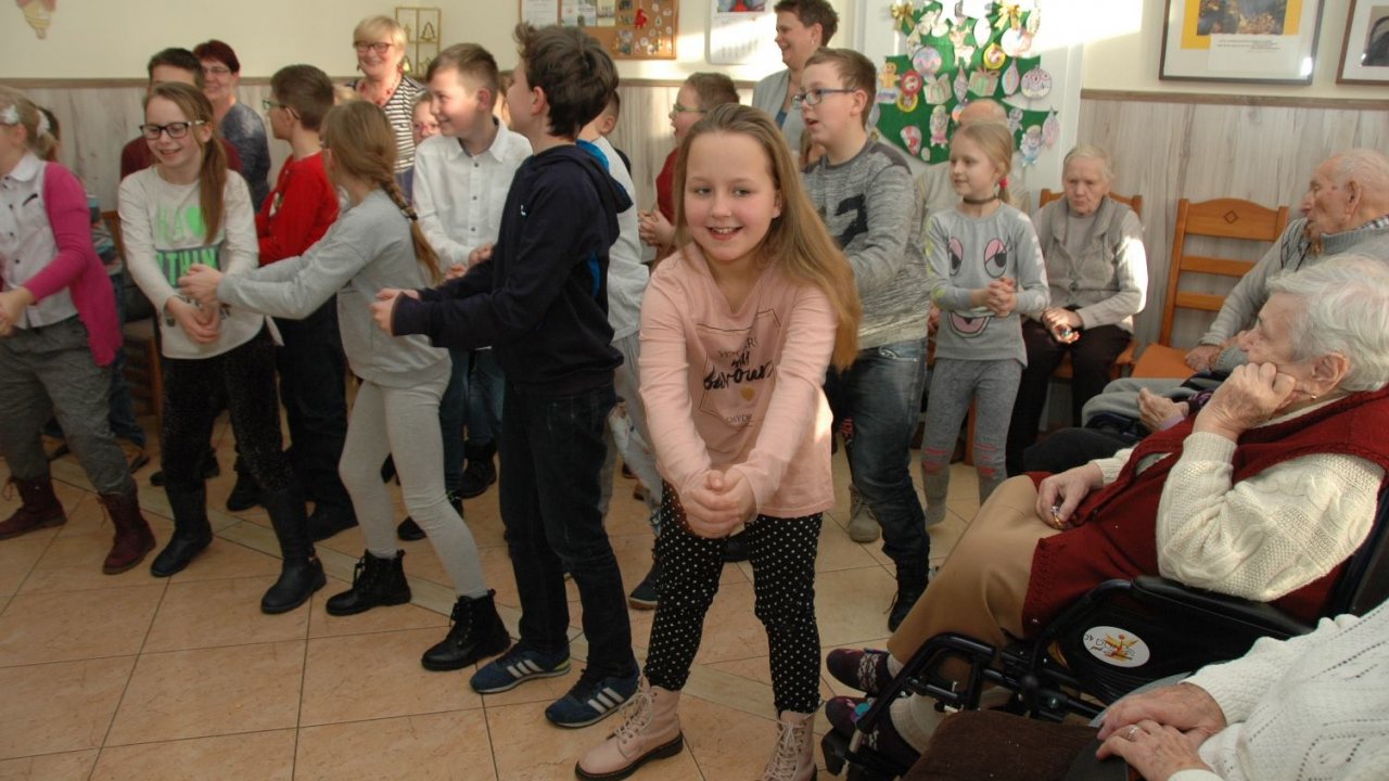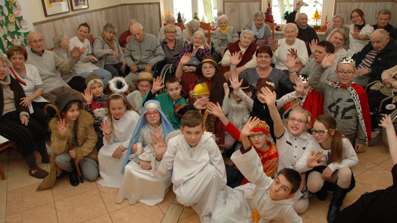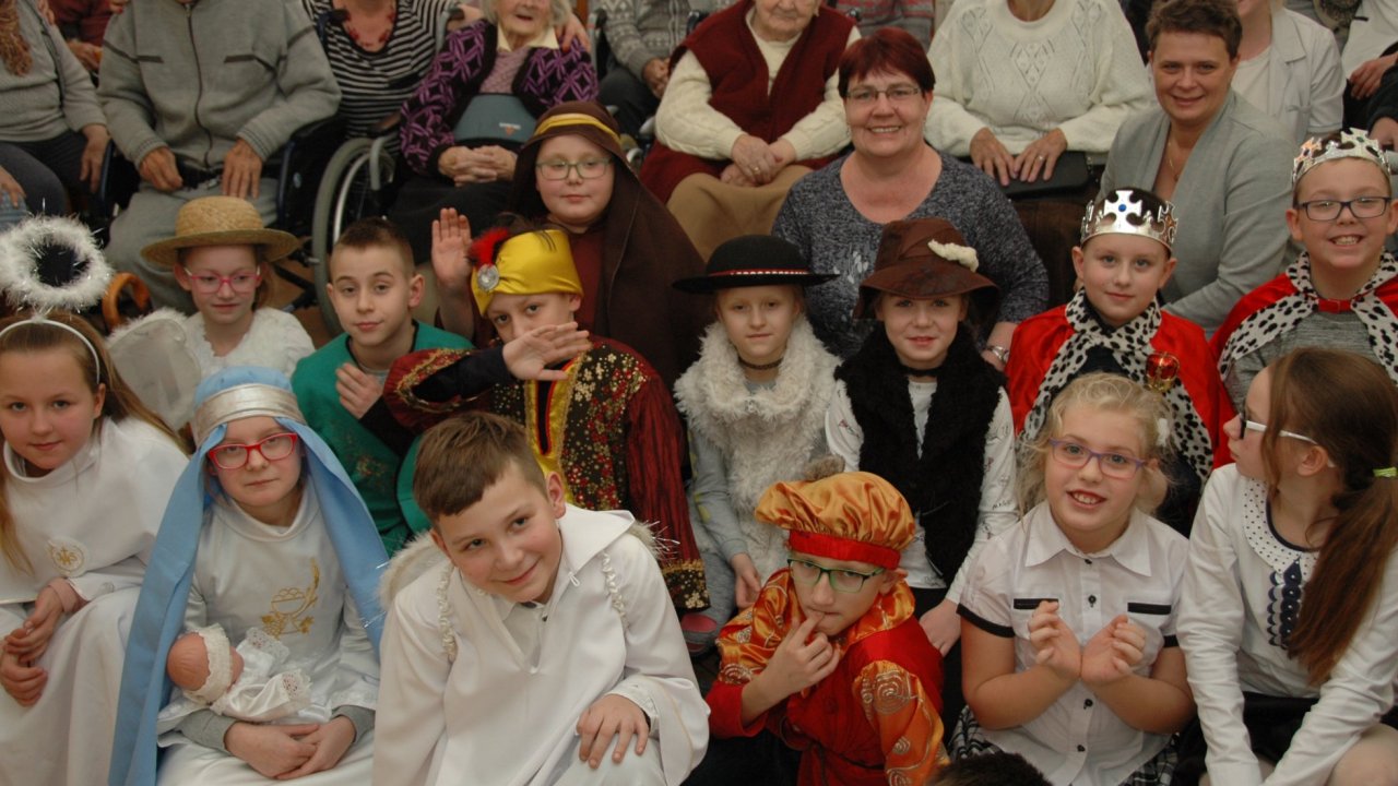 To już tradycja - w okolicy Dnia Babci i Dziadka odwiedzają nas dzieci ze Szkoły Podstawowej im Jana Pawła II w Jarząbkowie. Przyszły pięknie poprzebierane i "wystawiły" nam jasełka. Byliśmy pod wrażeniem prawdziwie aktorskich talentów. Miło było także razem pośpiewać - a nawet potańczyć. Dotychczas sztandarową zabawą było śpiewanie i pokazywanie "muzykanta" - ale "hitem" tego sezonu trzeba chyba jednak ogłosić wspólny taniec "chocolate"! Bardzo dziękujemy za ten wspólny czas - i gratulujemy paniom Wychowawczyniom, pani Dyrektor, Rodzicom - a dzieciom życzymy dalszej fantazji, odwagi, otwartości i radości życia.
