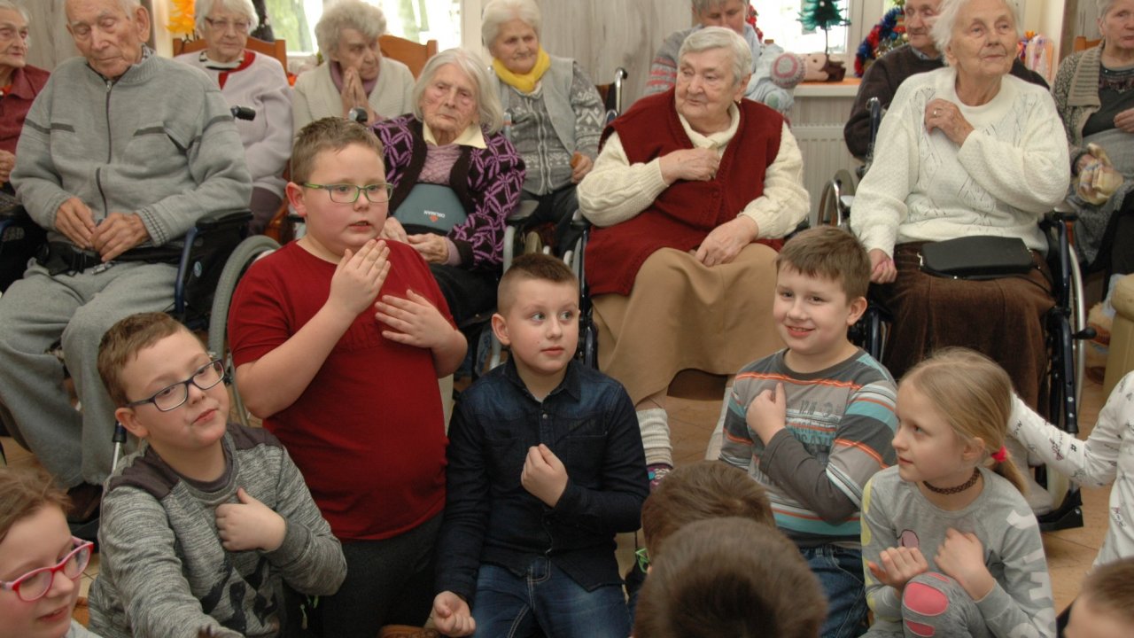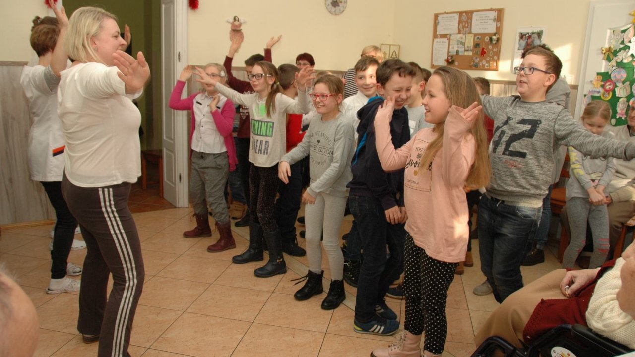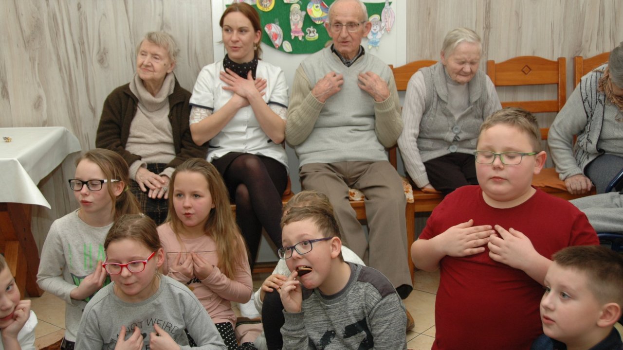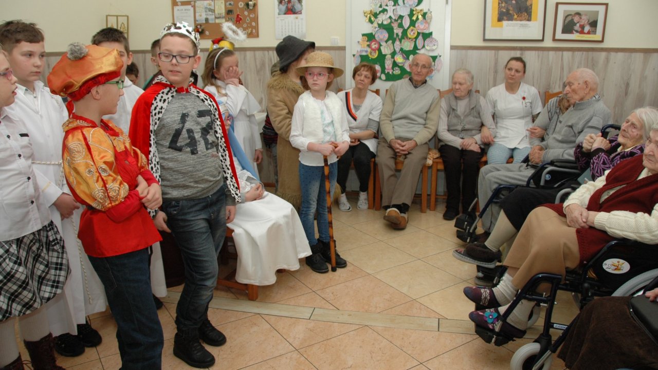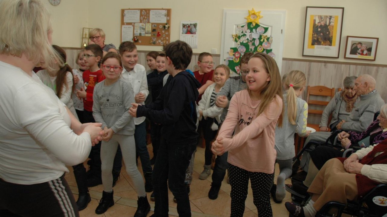 To już tradycja - w okolicy Dnia Babci i Dziadka odwiedzają nas dzieci ze Szkoły Podstawowej im Jana Pawła II w Jarząbkowie. Przyszły pięknie poprzebierane i "wystawiły" nam jasełka. Byliśmy pod wrażeniem prawdziwie aktorskich talentów. Miło było także razem pośpiewać - a nawet potańczyć. Dotychczas sztandarową zabawą było śpiewanie i pokazywanie "muzykanta" - ale "hitem" tego sezonu trzeba chyba jednak ogłosić wspólny taniec "chocolate"! Bardzo dziękujemy za ten wspólny czas - i gratulujemy paniom Wychowawczyniom, pani Dyrektor, Rodzicom - a dzieciom życzymy dalszej fantazji, odwagi, otwartości i radości życia.