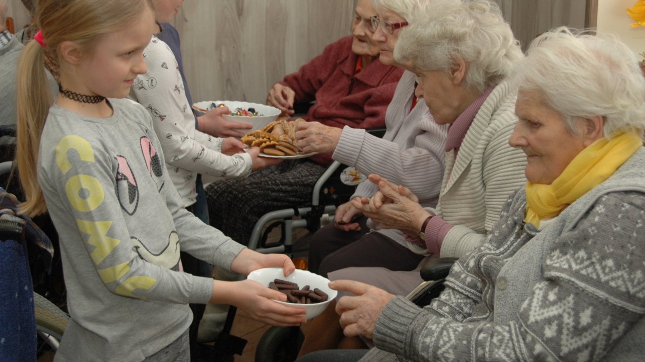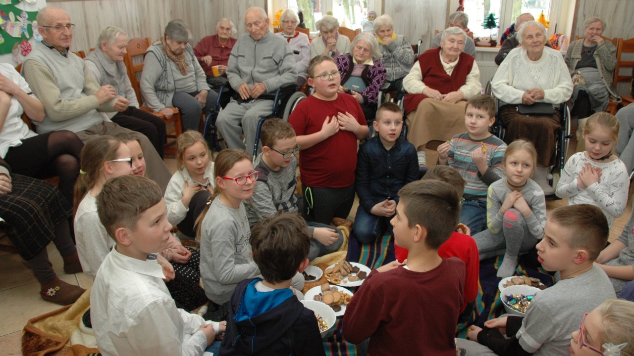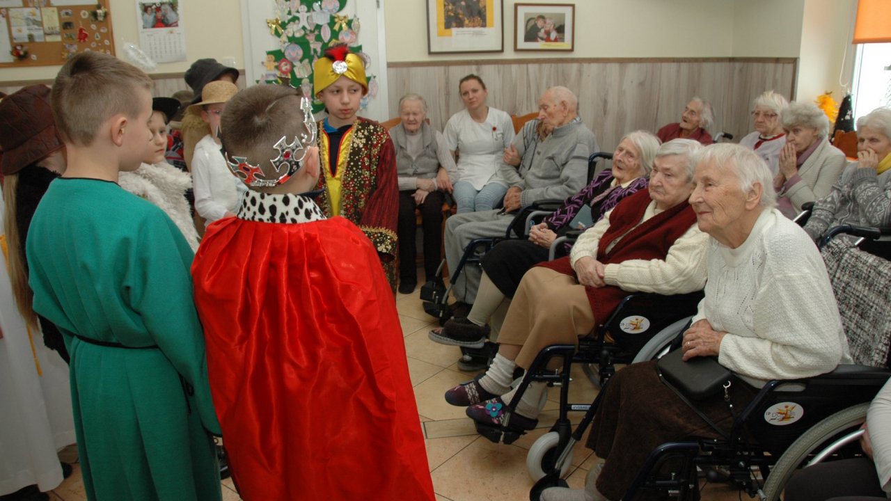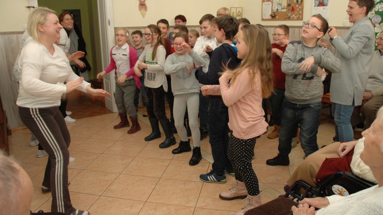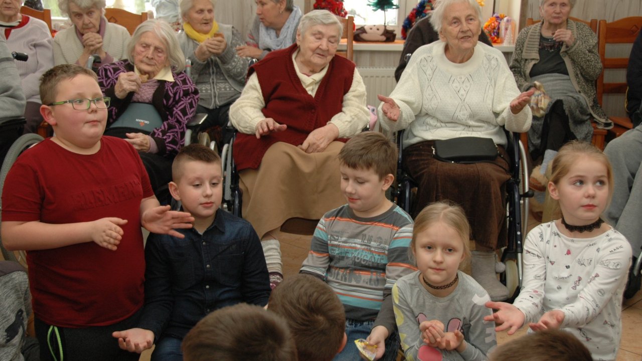 To już tradycja - w okolicy Dnia Babci i Dziadka odwiedzają nas dzieci ze Szkoły Podstawowej im Jana Pawła II w Jarząbkowie. Przyszły pięknie poprzebierane i "wystawiły" nam jasełka. Byliśmy pod wrażeniem prawdziwie aktorskich talentów. Miło było także razem pośpiewać - a nawet potańczyć. Dotychczas sztandarową zabawą było śpiewanie i pokazywanie "muzykanta" - ale "hitem" tego sezonu trzeba chyba jednak ogłosić wspólny taniec "chocolate"! Bardzo dziękujemy za ten wspólny czas - i gratulujemy paniom Wychowawczyniom, pani Dyrektor, Rodzicom - a dzieciom życzymy dalszej fantazji, odwagi, otwartości i radości życia.
