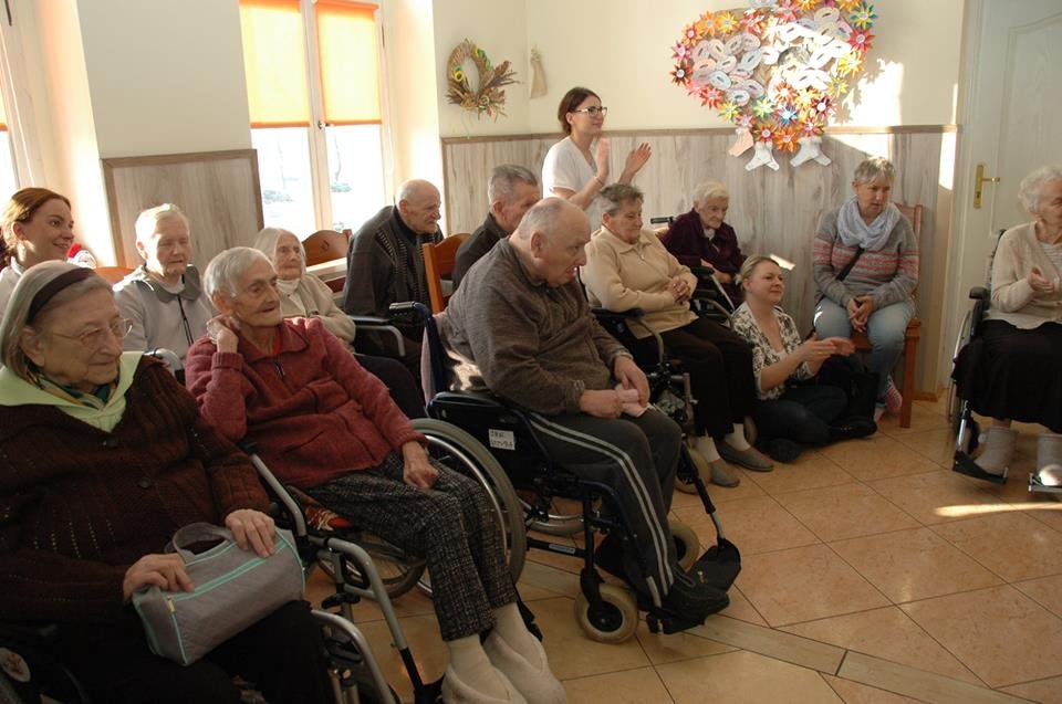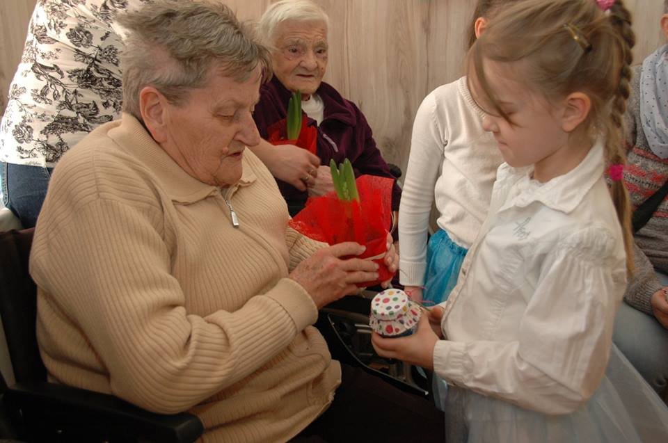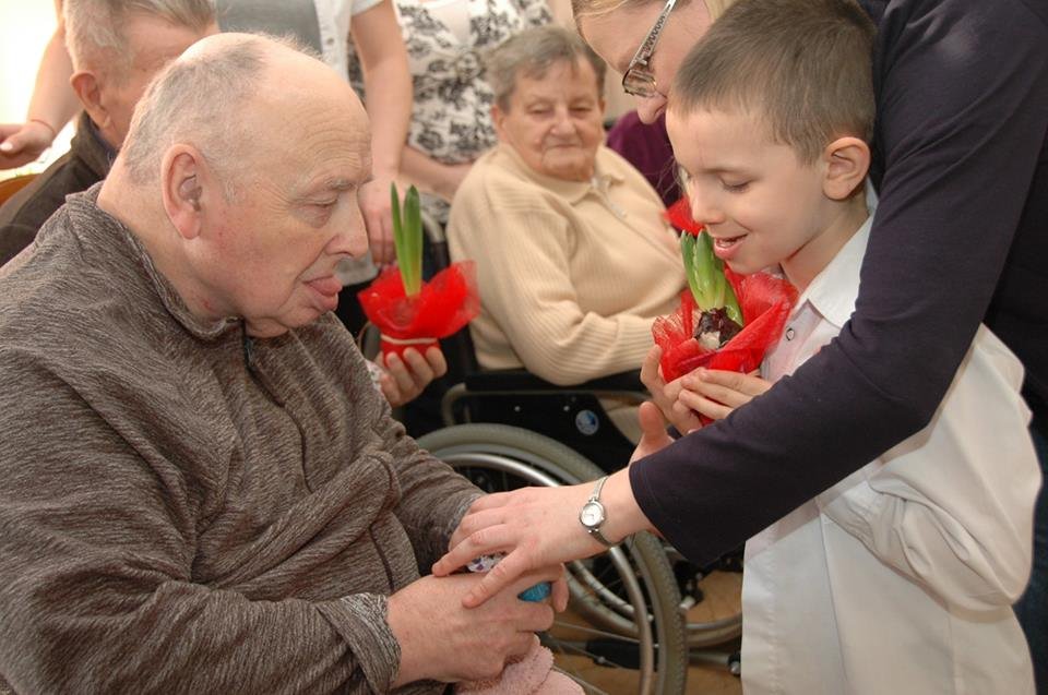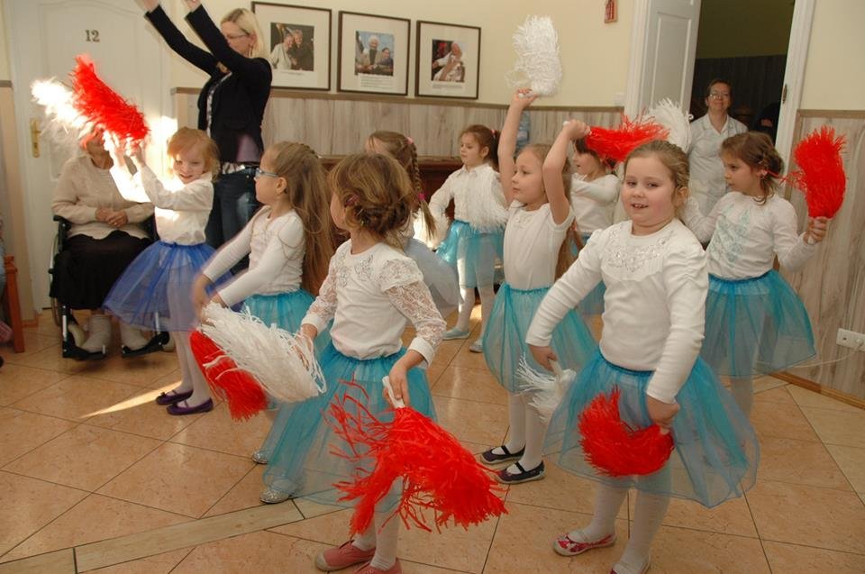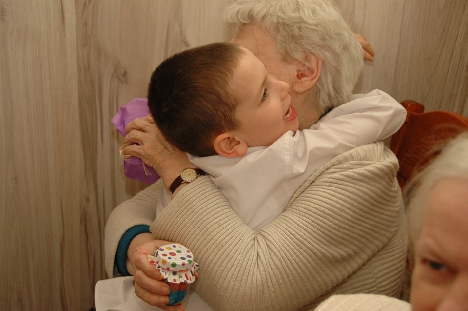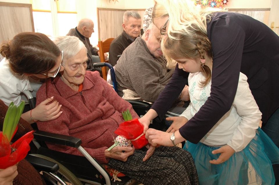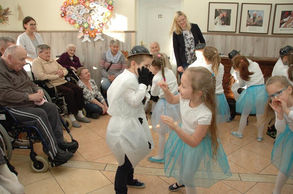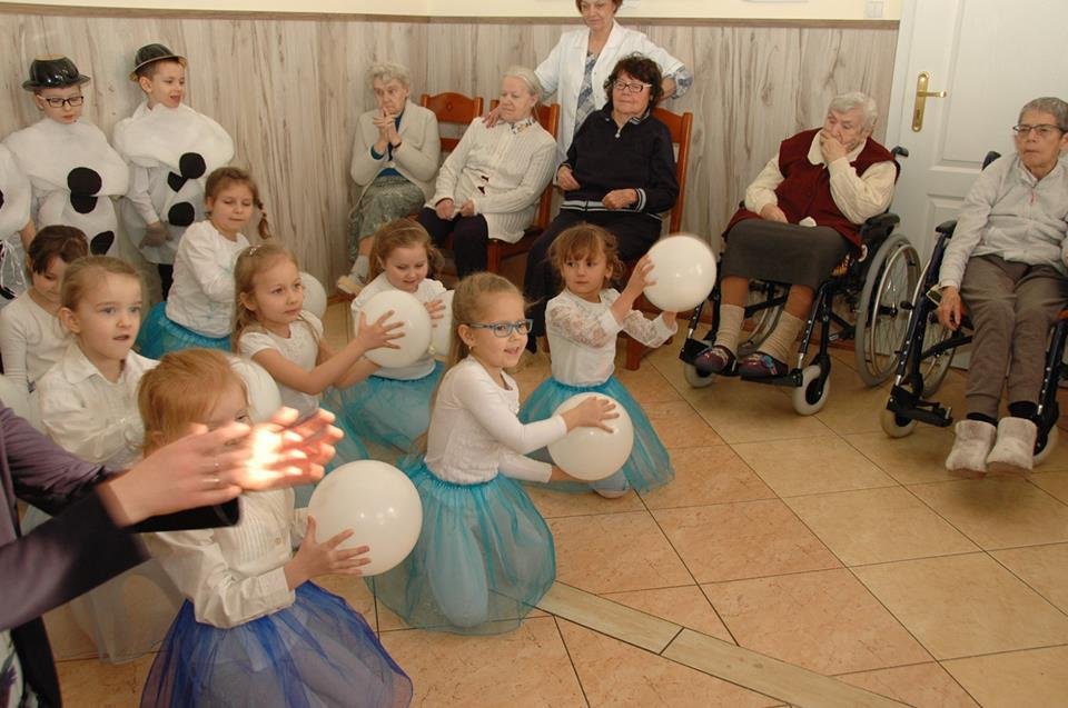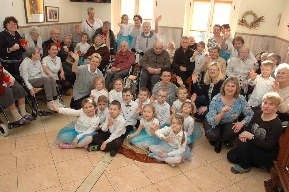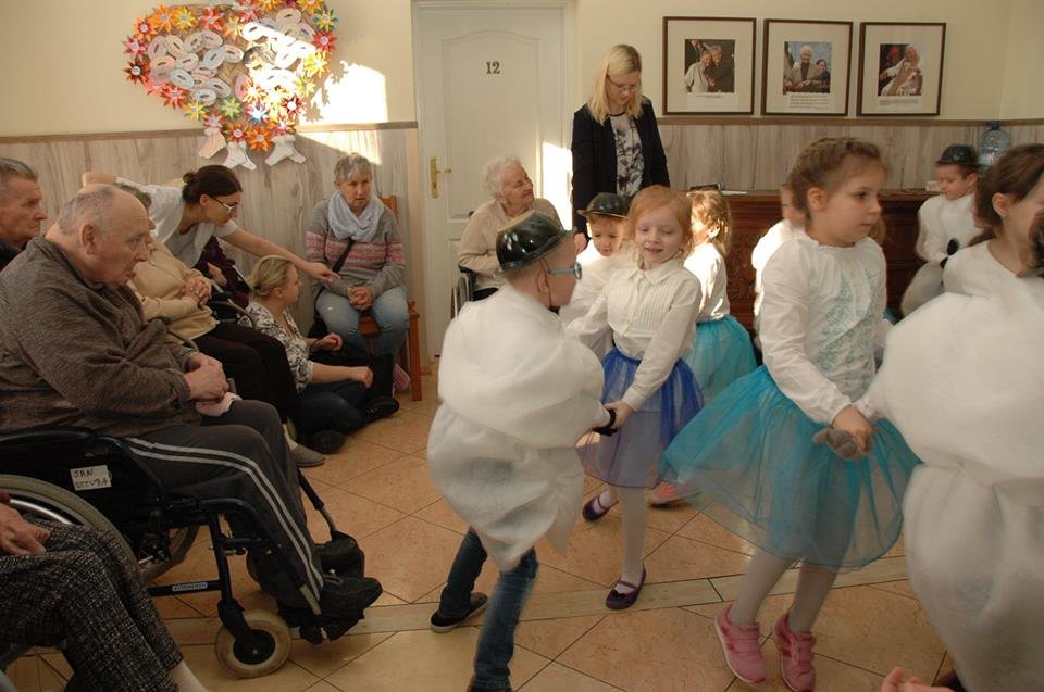 Odwiedziły nas dzieci z Przedszkola Samorządowego w Żydowie. I nie ma żadnej przesady w określeniu "cudowne" - bo okazuje się, że mają niezwykły talent do obdarowywania dobrem, ciepłem, entuzjazmem. Małe pięciolatki o bardzo dojrzałych sercach. Wzruszyły nas swoim poważnym spoglądaniem na wózki, laski, pomarszczone dłonie - rozbroiły nas swoją odwagą podchodzenia i przytulania się do kolejnych starszych osób. Gratulujemy pani Wychowawczyni, pani Dyrektor, Rodzicom i całemu zespołowi Przedszkola - bo po prostu widać mądrą i cierpliwą pracę nad tymi "żywymi skarbami". A dzieciom życzymy pięknego dzieciństwa - i oczywiście zapraszamy ponownie.