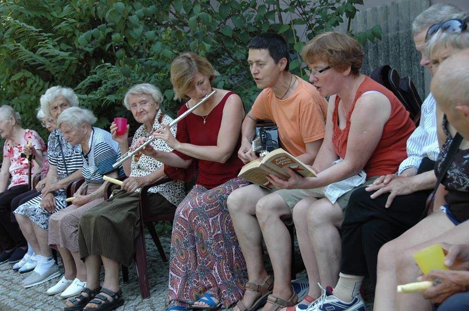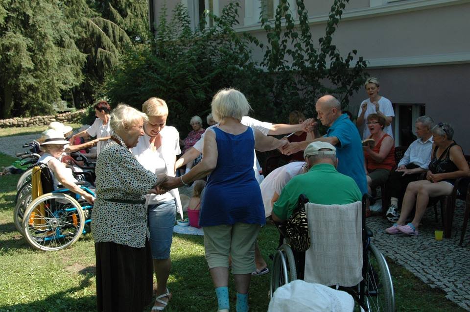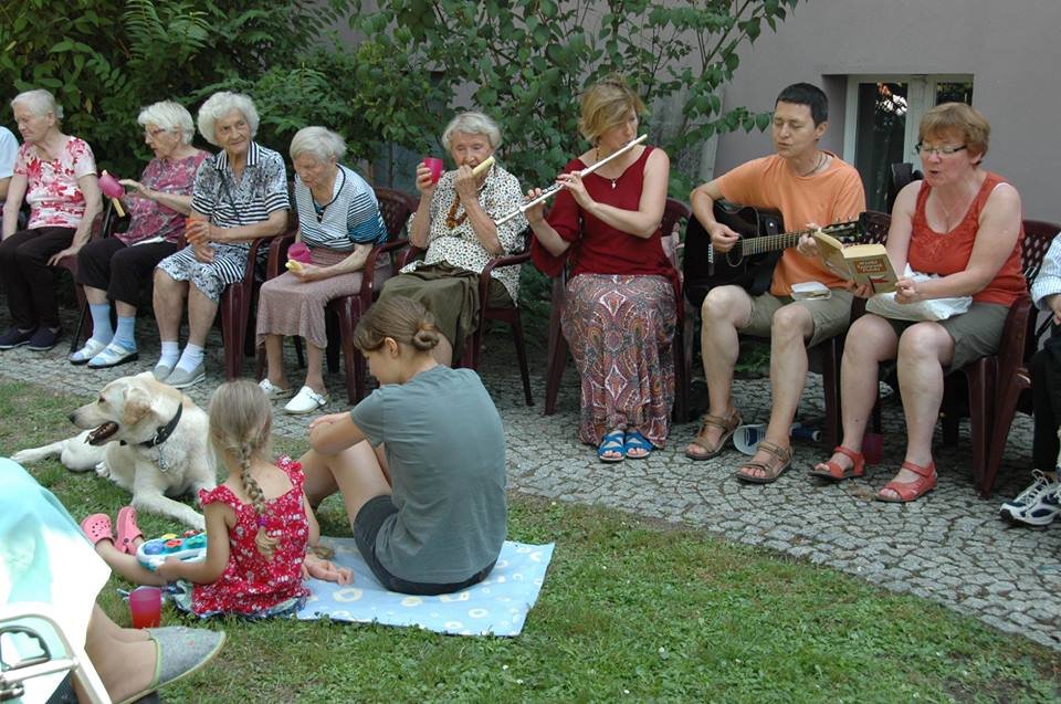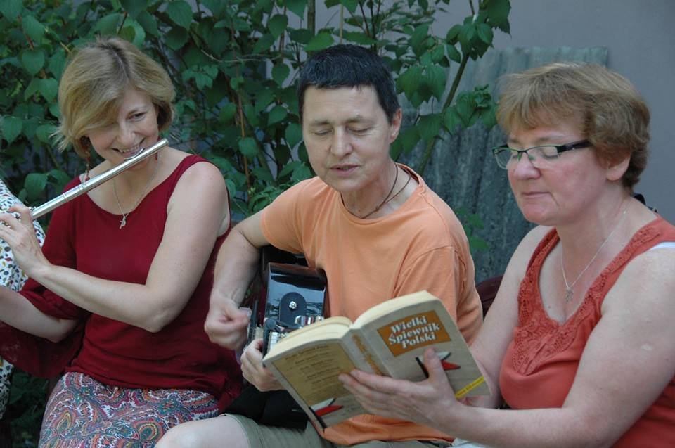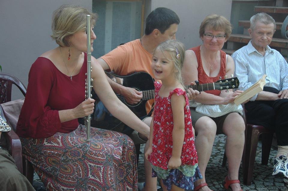 To lato mijało pod znakiem upałów - których wprawdzie bardzo się baliśmy - ale jakoś sobie z nimi radziliśmy. Twarzowe kapelusze i okulary przeciwsłoneczne dodawały uroku. Zawsze znalazł się jakiś "głęboki cień" na tyłach domu - do tego "kurtyna wodna" naszego własnego pomysłu - i od razu robiło się wczasowo i letniskowo. Ale kluczem do dobrego samopoczucia zawsze są ciekawe zajęcia i spotkania - bardzo dziękujemy naszym wiernym "grającym i śpiewającym umilaczom": Agnieszce, Majdzi, Monice, Dobrusi i już nie takiej małej Łucyjce.