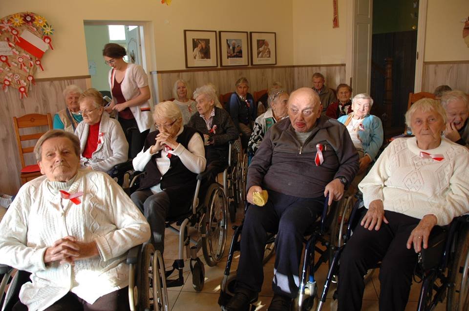 Mieliśmy zaszczyt świętować dzisiejszy dzień wśród tych z naszych pensjonariuszy, których można nazwać "rówieśnikami niepodległości". Pani Stenia - 97 lat, pan Franciszek 97 lat, pani Izabella 94 lata, pani Helenka 94 lata, pani Marysia 93 lata. Rośli razem z Rzeczpospolitą, są świadkami większości wydarzeń z minionego stulecia - dzisiaj byli bardzo wzruszeni śpiewając Hymn Polski, a my jesteśmy dumni, że są wśród nas.