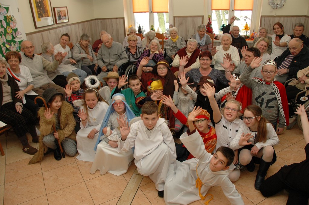 To już tradycja - w okolicy Dnia Babci i Dziadka odwiedzają nas dzieci ze Szkoły Podstawowej im Jana Pawła II w Jarząbkowie. Przyszły pięknie poprzebierane i "wystawiły" nam jasełka. Byliśmy pod wrażeniem prawdziwie aktorskich talentów. Miło było także razem pośpiewać - a nawet potańczyć...