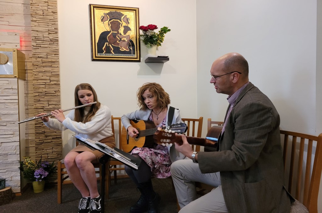 Trwa miesiąc różańcowy - z tej okazji przeżyliśmy piękny czas wspólnego śpiewania i muzykowania. Pani Magda, pan Arek, Tereska i pani Ewa - rodzina naszej pani Izabelki - po prostu przyjechali i obdarowali nas swoim wspaniałym talentem. Bardzo dziękujemy za piękny śpiew, za oprawę Mszy świętej, za...
